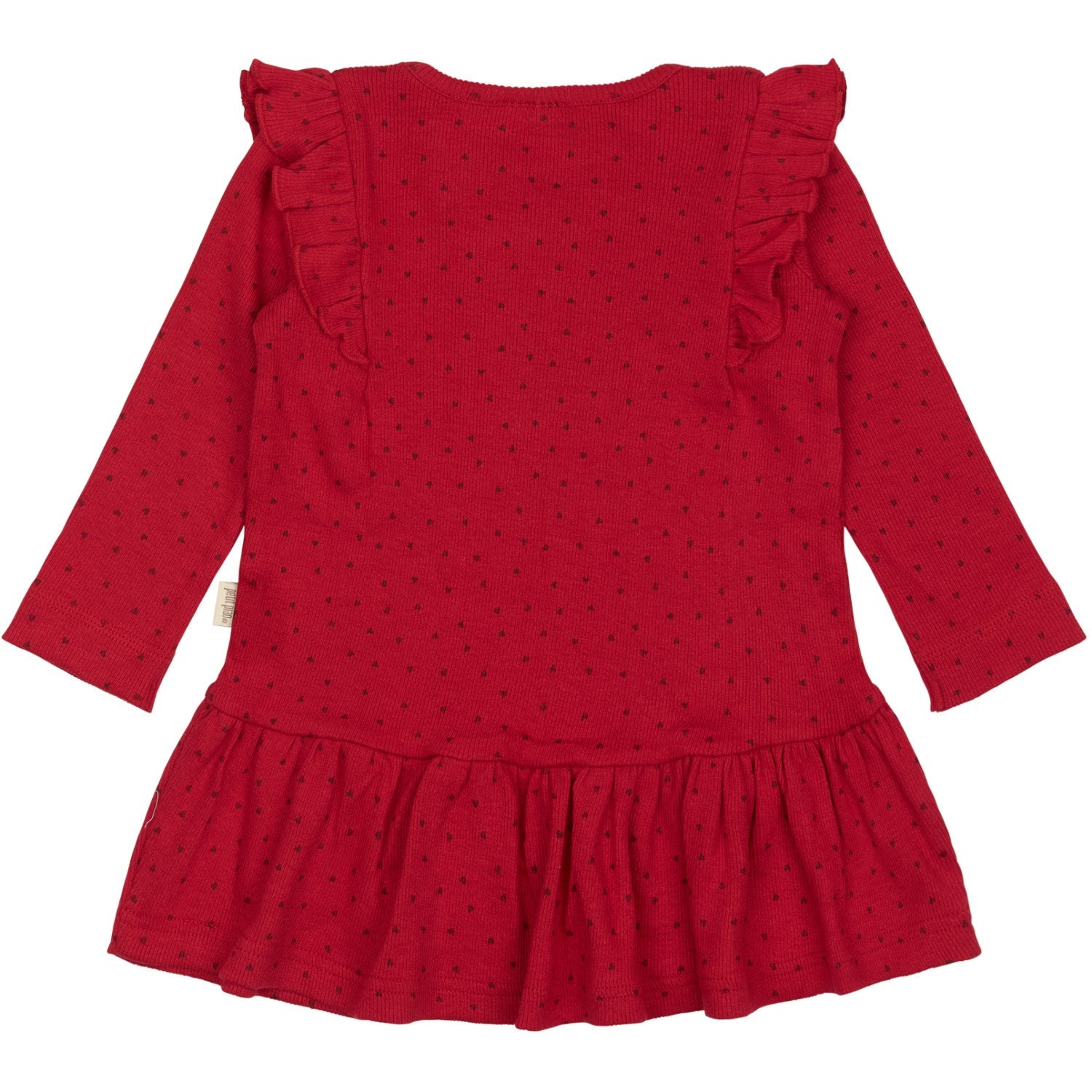 Petit Piao Jet Red/Biking Red Kjole L/S Frill Modal Heart