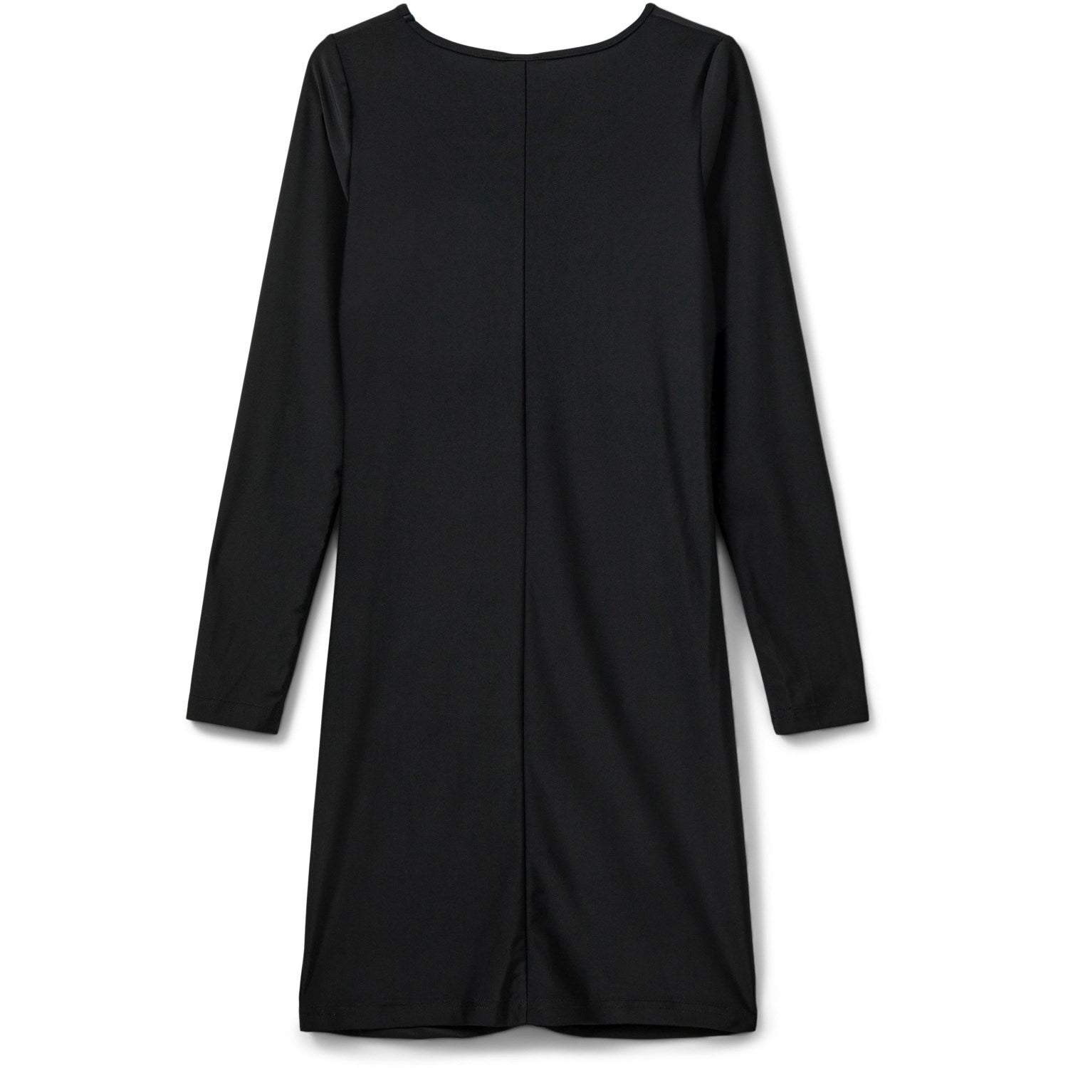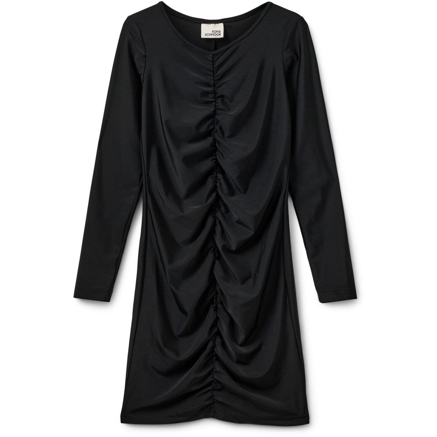 Opplev eleganse med Sofie Schnoors svarte kjole, perfekt for enhver anledning. Denne langermede kjolen presenterer en stilig og glatt overflate, som gir et klassisk og sofistikert utseende. Den dype V-halsen og de rynkede detaljene foran gir en moderne vri som fanger blikket. Med sitt tidløse design og nøytrale farge er denne kjolen ideell til både hverdagsbruk og spesielle anledninger. Den kan enkelt matches med forskjellig tilbehør for å skape et unikt utseende.