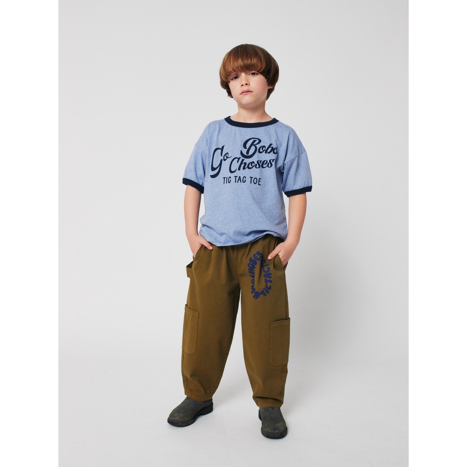 Gjør hver dag litt lysere med Bobo Choses Light Blue Go Bobo T-skjorten! Laget av mykt, bærekraftig materiale som er skånsomt mot barnets hud, kombinerer denne T-skjorten komfort med morsomt design. Lyseblått med et iøynefallende mønster, tilbyr den en avslappet passform som er perfekt for lek og læring. Lett å vedlikeholde, denne T-skjorten er ideell for hverdagsbruk og oser av stil og funksjonalitet.