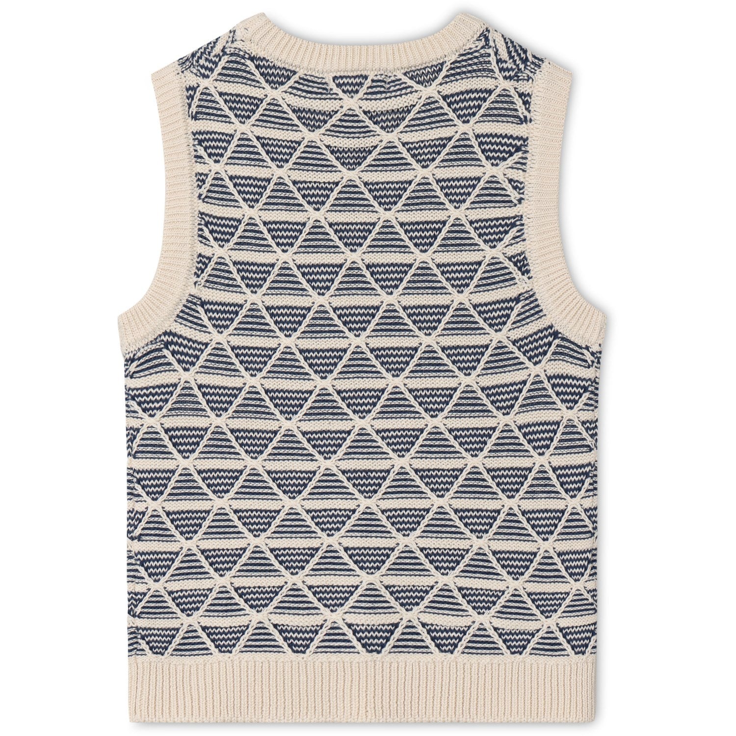 Oppdag den herlige Fliink Sandshell Sune Strikk Vest, perfekt for enhver barnegarderobe! Denne klassiske vesten er laget av 100% økologisk bomull, noe som garanterer mykhet og komfort mot barnets hud. Med et øye for stil er vesten utformet med en flerfarget grafisk strikkeoppskrift som gir et lekent og sjarmerende preg. Designet inkluderer en rund hals og løs passform, samt ribbestrikk ved ermeåpningen, halsåpningen og nederst for optimal bevegelsesfrihet. Vår omsorg for detaljer strekker seg til vedlikeholdet; vesten kan maskinvaskes på skånsomt program og bør legges flatt for tørking for å bevare formen og kvaliteten. Ikke bruk blekemiddel eller tørketrommel, og stryk den på lav temperatur for å unngå skade. Med sin funksjonelle og fasjonable design, er denne vesten et utmerket valg for både hverdagsbruk og spesielle anledninger, og den sikrer at ditt barn ser flott ut samtidig som de føler seg komfortable.