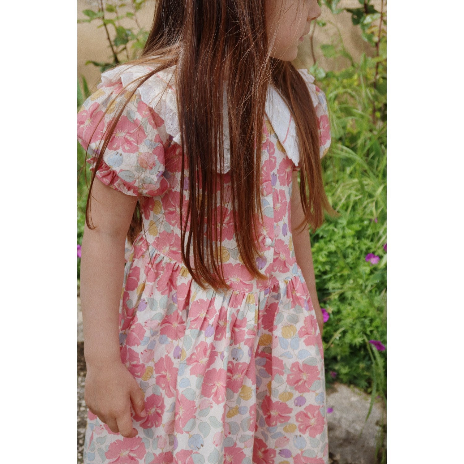 Oppdag den sjarmerende Konges Sløjd Fleur Anglaise Coeur Halsbånd Kjole, perfekt for små motebevisste. Denne kjolen er fremstilt av 100 % økologisk bomull, sertifisert av GOTS, og garanterer både stil og komfort. Designet inkluderer en elegant rund blondekrage, korte puffermer og stoffkledde knapper foran. Kjolens unike festestropper knyttes i ryggen, sikrer en skreddersydd passform. Med sitt tidløse mønster og delikate detaljer, er denne kjolen ideell for alle anledninger, samtidig som den er skånsom mot barnets hud og miljøet.