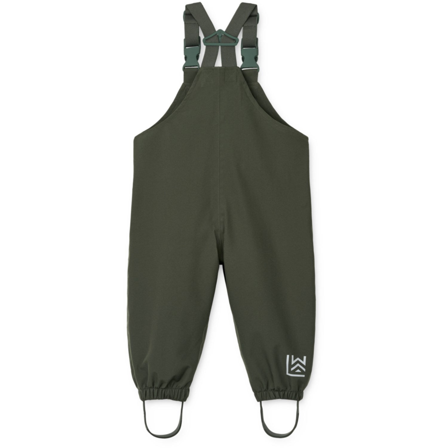 - Regnbukse med justerbare seler og fotstropper i silikon