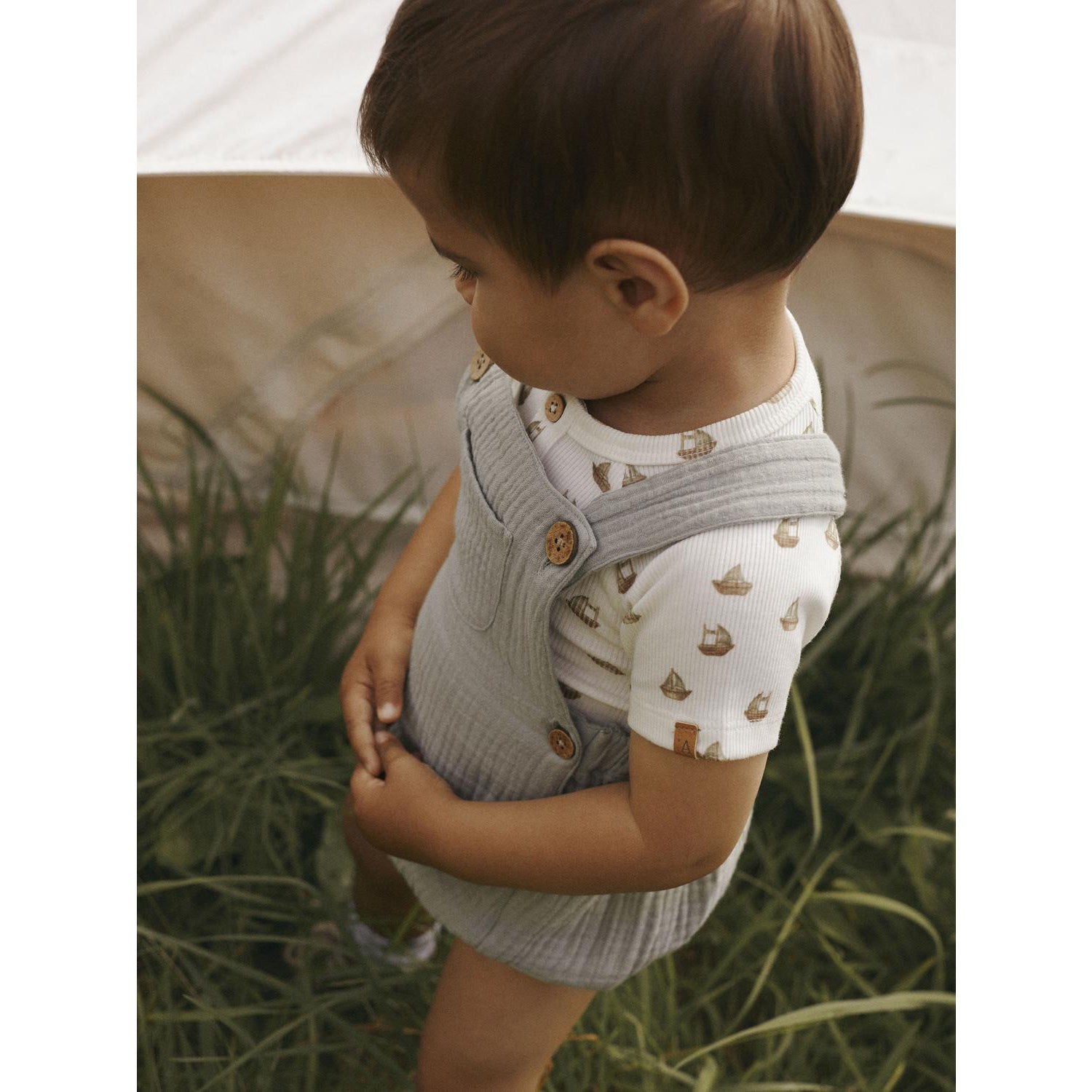 Med sitt delikate mønster som gjentas over hele stoffet, kombinerer bodyen stil med funksjonalitet, der trykknappene både i skulderen og under gjør påkledning og bleieskift smidig. Bodyen er holdbar og enkel å vedlikeholde, og den er ideell for både lek og avslapning. Husk å holde den unna åpen flamme for sikker bruk hver dag.