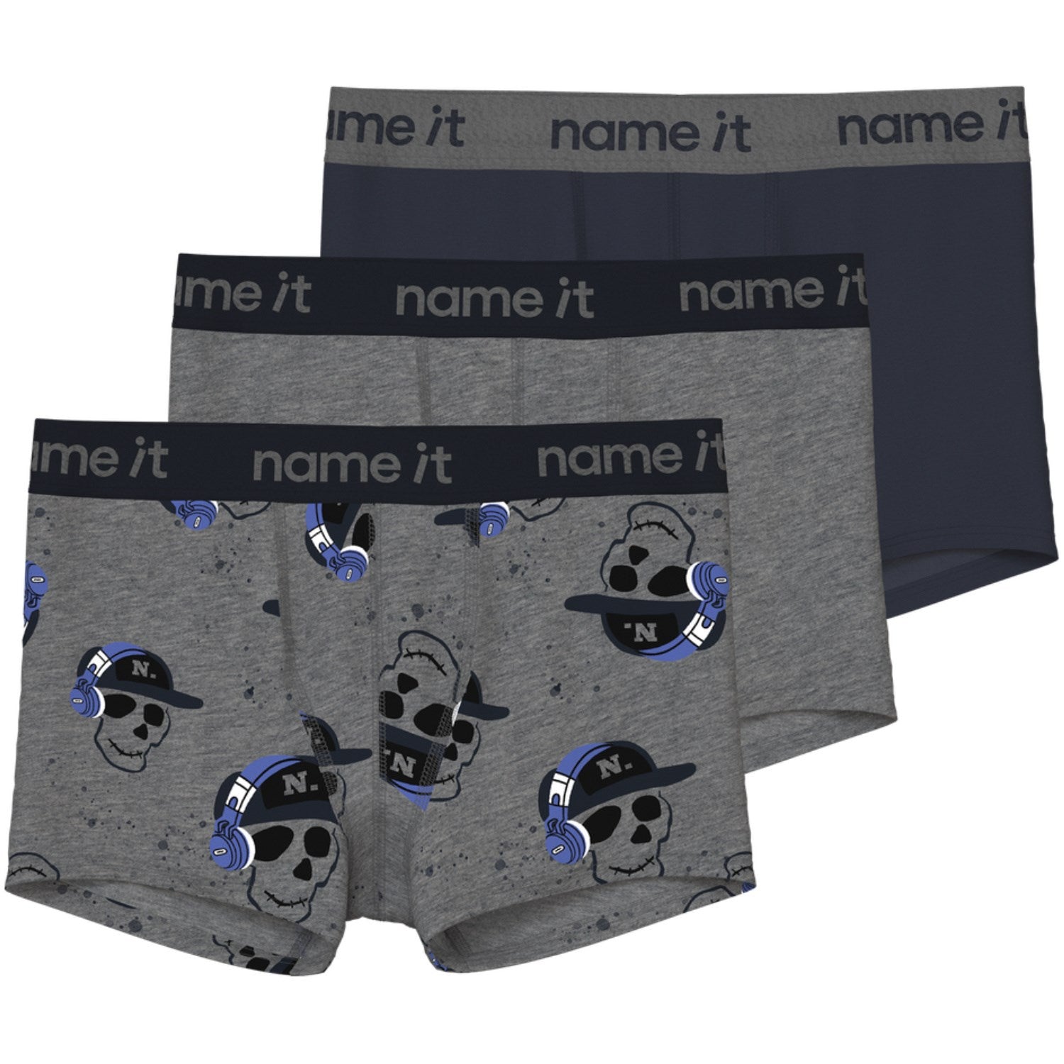 Name It Dark Grey Melange Nkmboxer 3P Dark Grey Mel Skull Noos