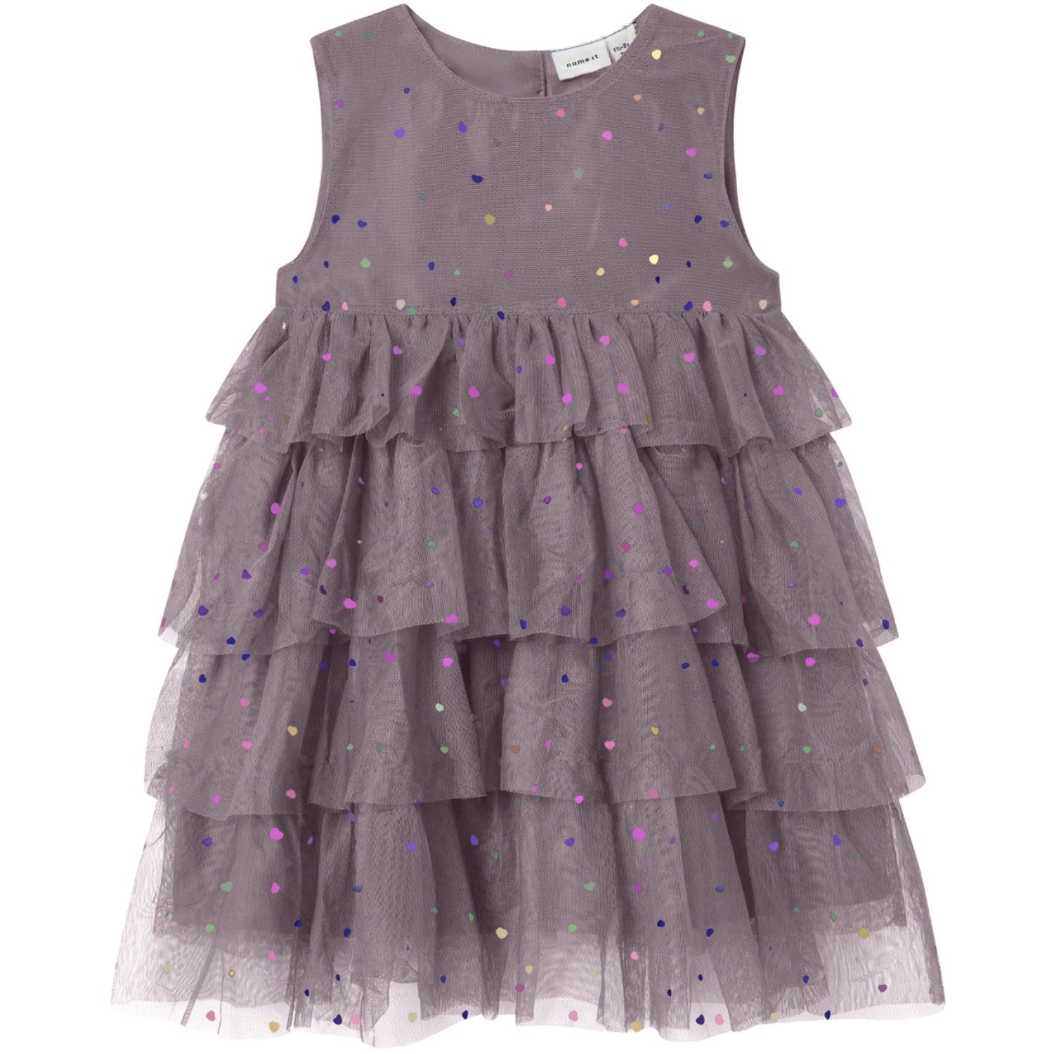 Kle opp din lille stjerne til festlige anledninger med Name It Keepsake Lilac Nmfrasille Spencer. Denne sjarmerende spencer-kjolen, utformet fra det lette og nettlignende tyllstoffet, sikrer et elegant preg. Kjolen har en klassisk rund hals, lange ermer og sikker knappefeste for enkel av- og påkledning. Det skinnende folietrykket gir et glamorøst utseende, mens det tettsittende polyesterfôret sørger for at kjolen ikke er gjennomsiktig. Med dens behagelige normal passform, er denne kjolen perfekt for lange dager med lek og fest.