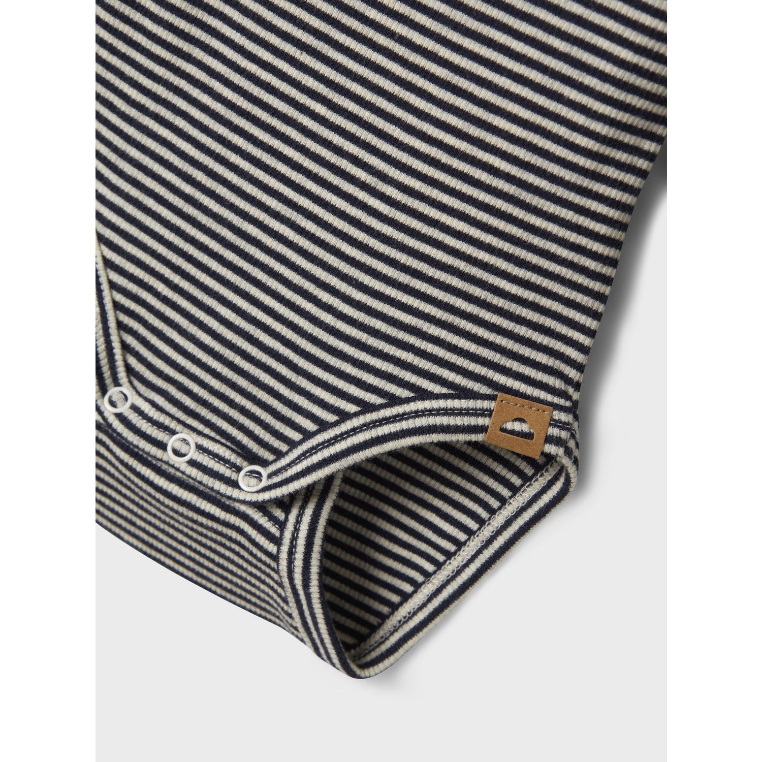 Gi barnet ditt den perfekte kombinasjonen av stil og komfort med Name It Navy Blazer Nbnberro R Ls Body. Denne bodysuiten er laget med tanke på hverdagsbruk og er både moteriktig og praktisk. Med sin rene, marineblå farge og diskrete knappedetaljer, tilbyr den en klassisk look som er enkel å matche med andre plagg. Bodysuiten har en behagelig rund hals og lange ermer med sammenbrettbare mansjetter, ideell for variert vær.