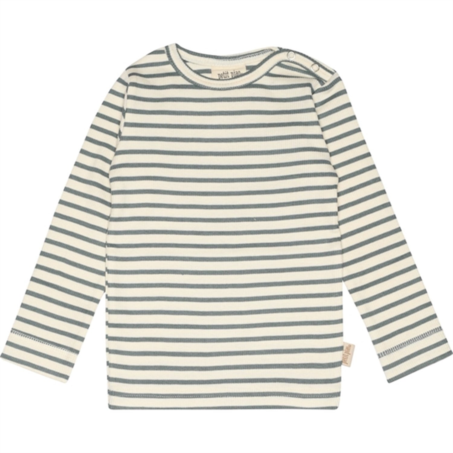 Petit Piao Light Petrol/Offwhite Bluse Modal Striped