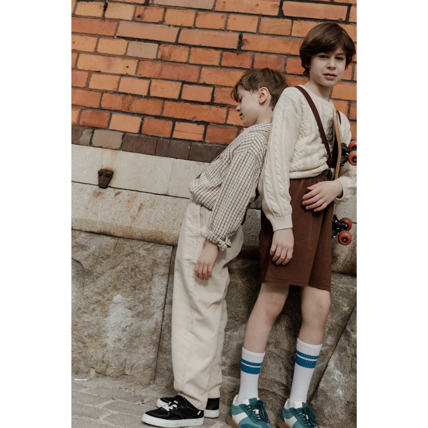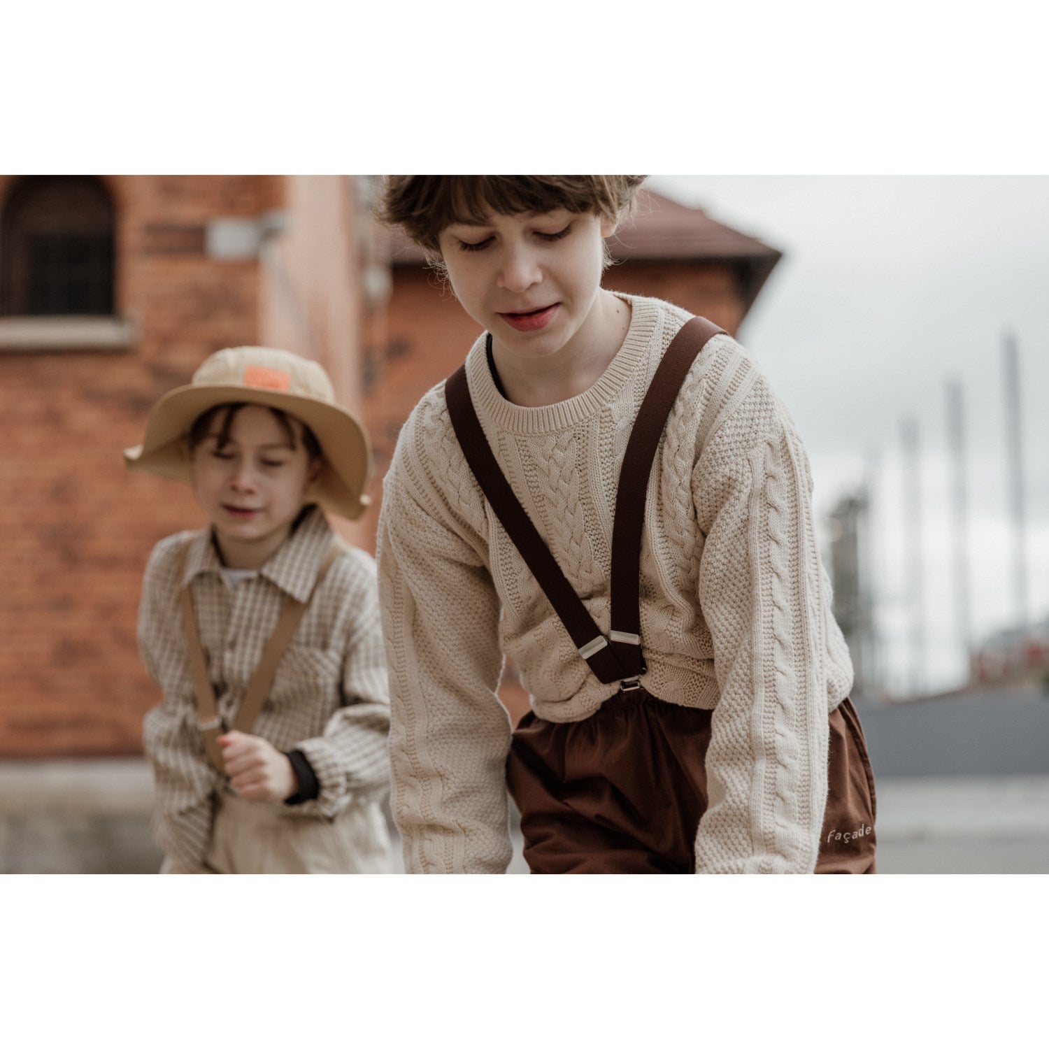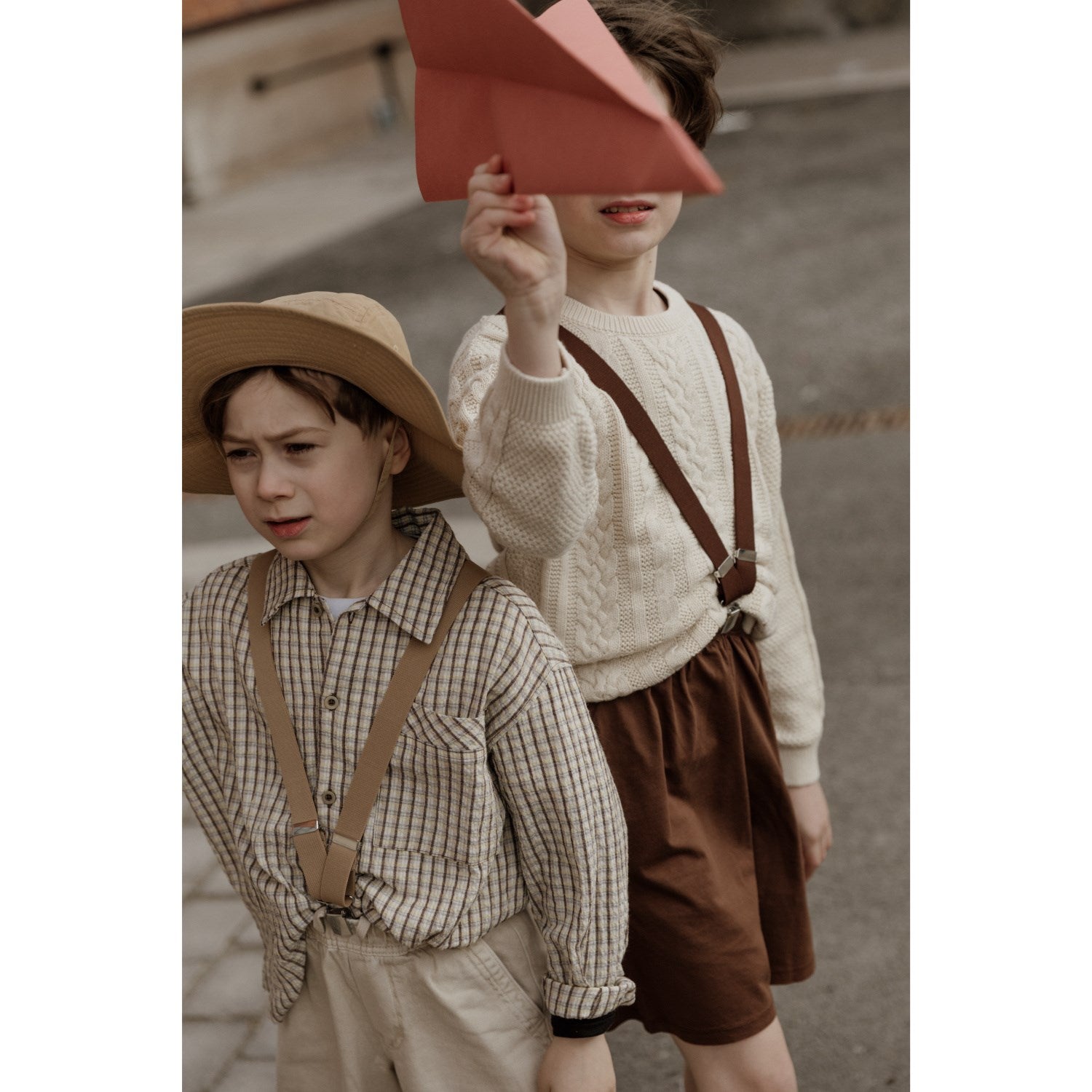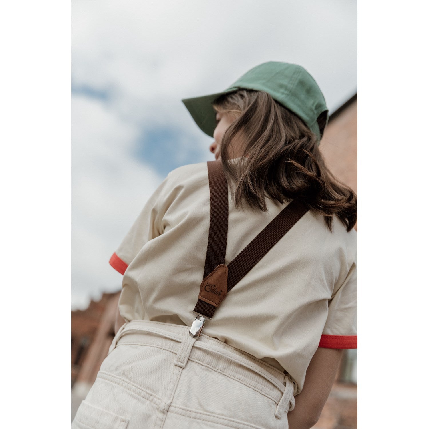 Oppdag de sjarmerende Silly Silas barnebuksene med bukseseler i sjokoladebrun farge som kombinerer stil og bekvemmelighet. Disse buksene er produsert i mykt materiale som garanterer komfort, designet med justerbare seler for en perfekt passform. Ideell for lek og hverdagsbruk, og kan enkelt vaskes.