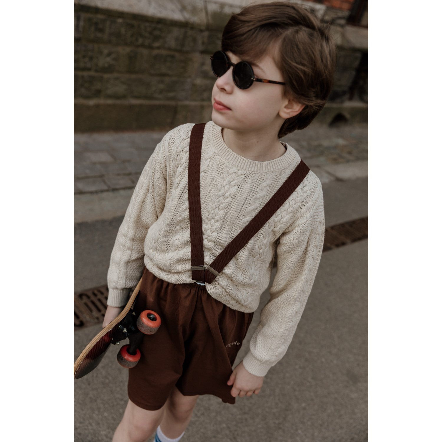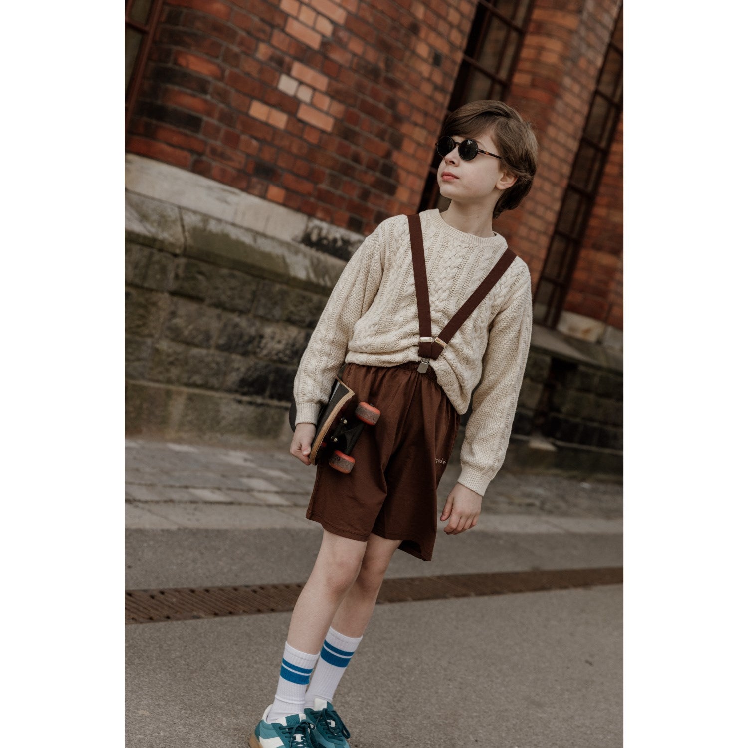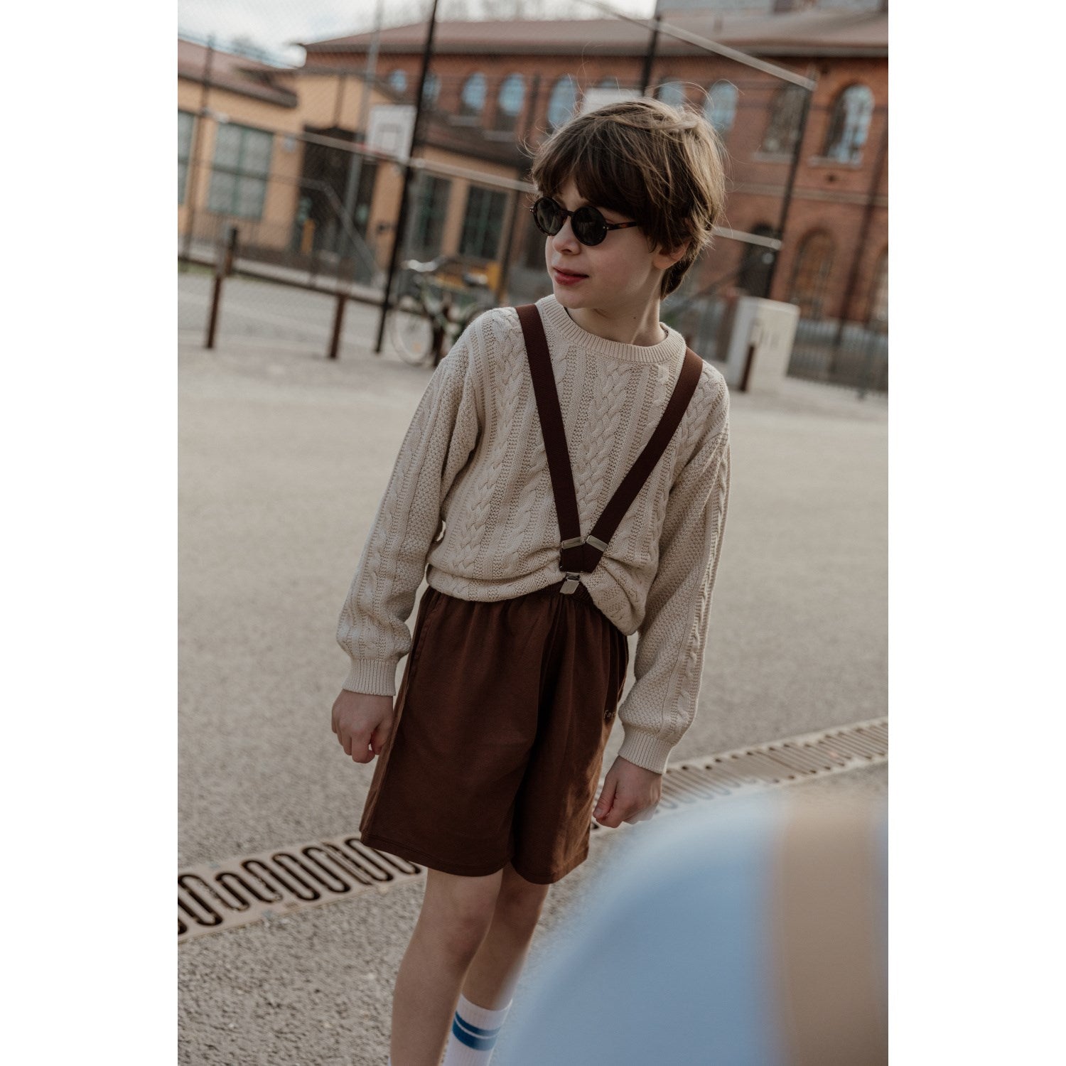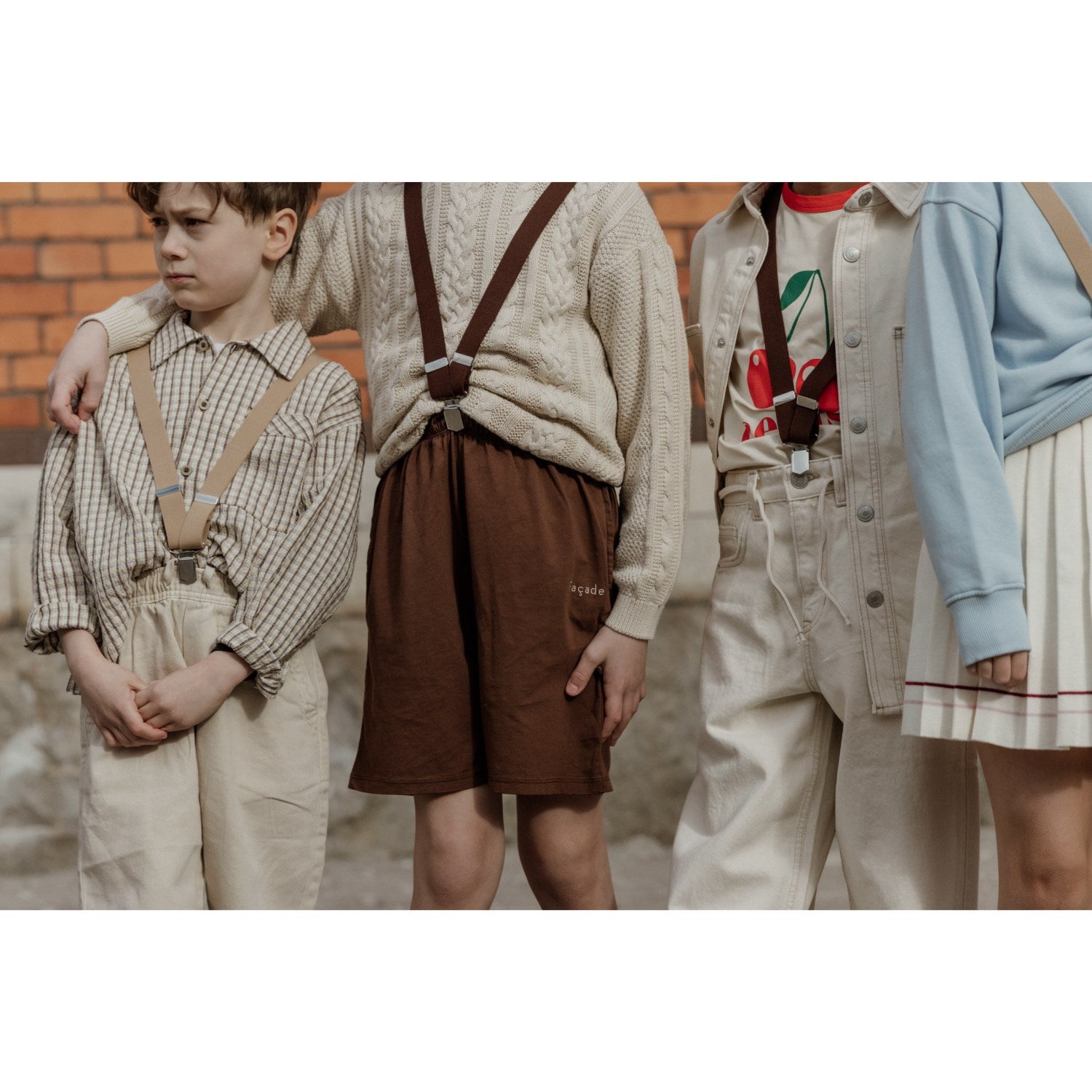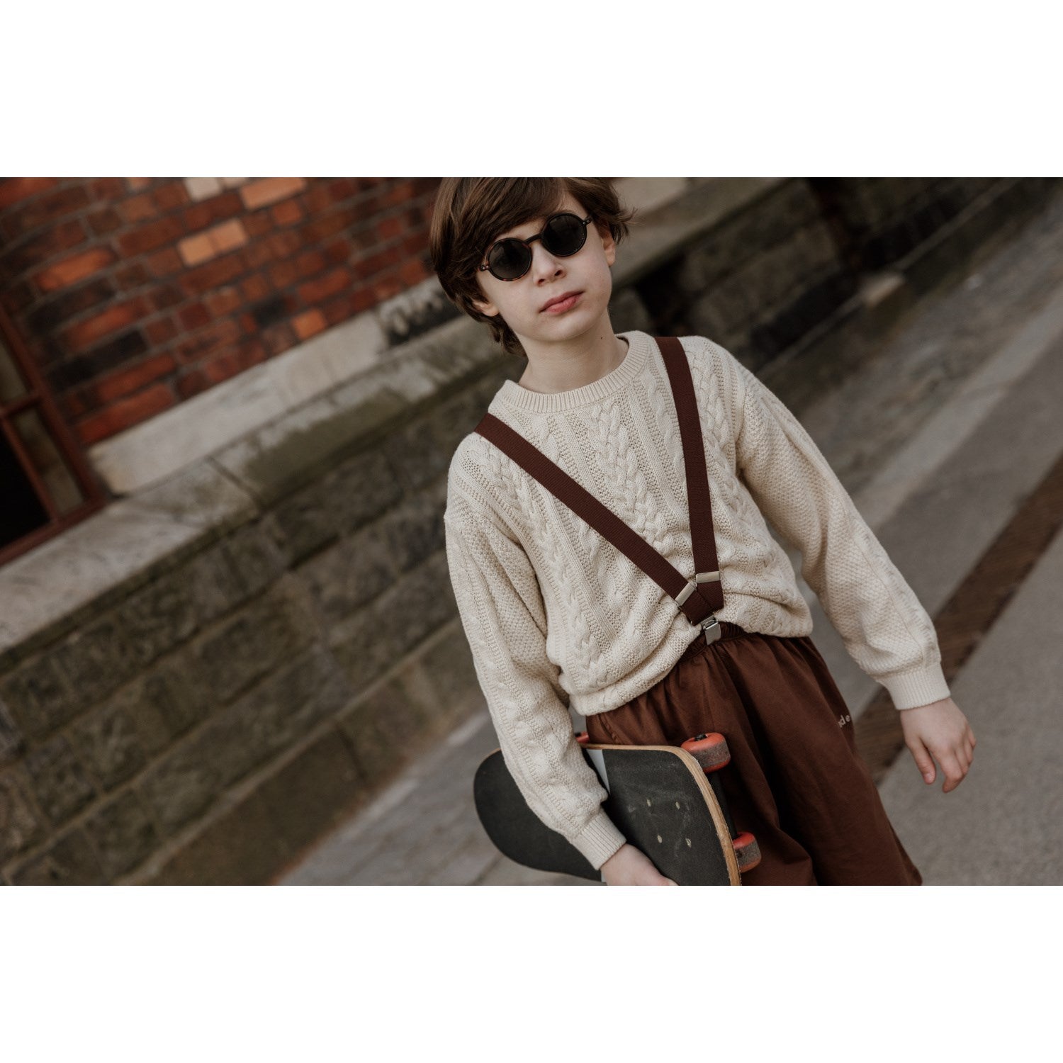 Oppdag de sjarmerende Silly Silas barnebuksene med bukseseler i sjokoladebrun farge som kombinerer stil og bekvemmelighet. Disse buksene er produsert i mykt materiale som garanterer komfort, designet med justerbare seler for en perfekt passform. Ideell for lek og hverdagsbruk, og kan enkelt vaskes.