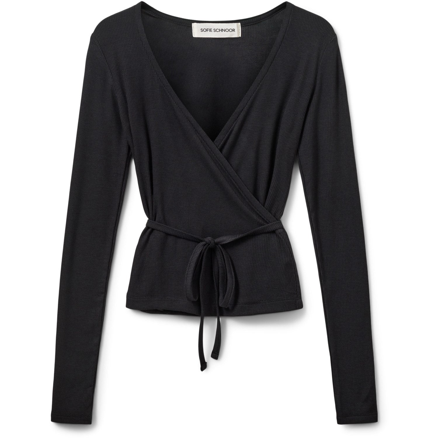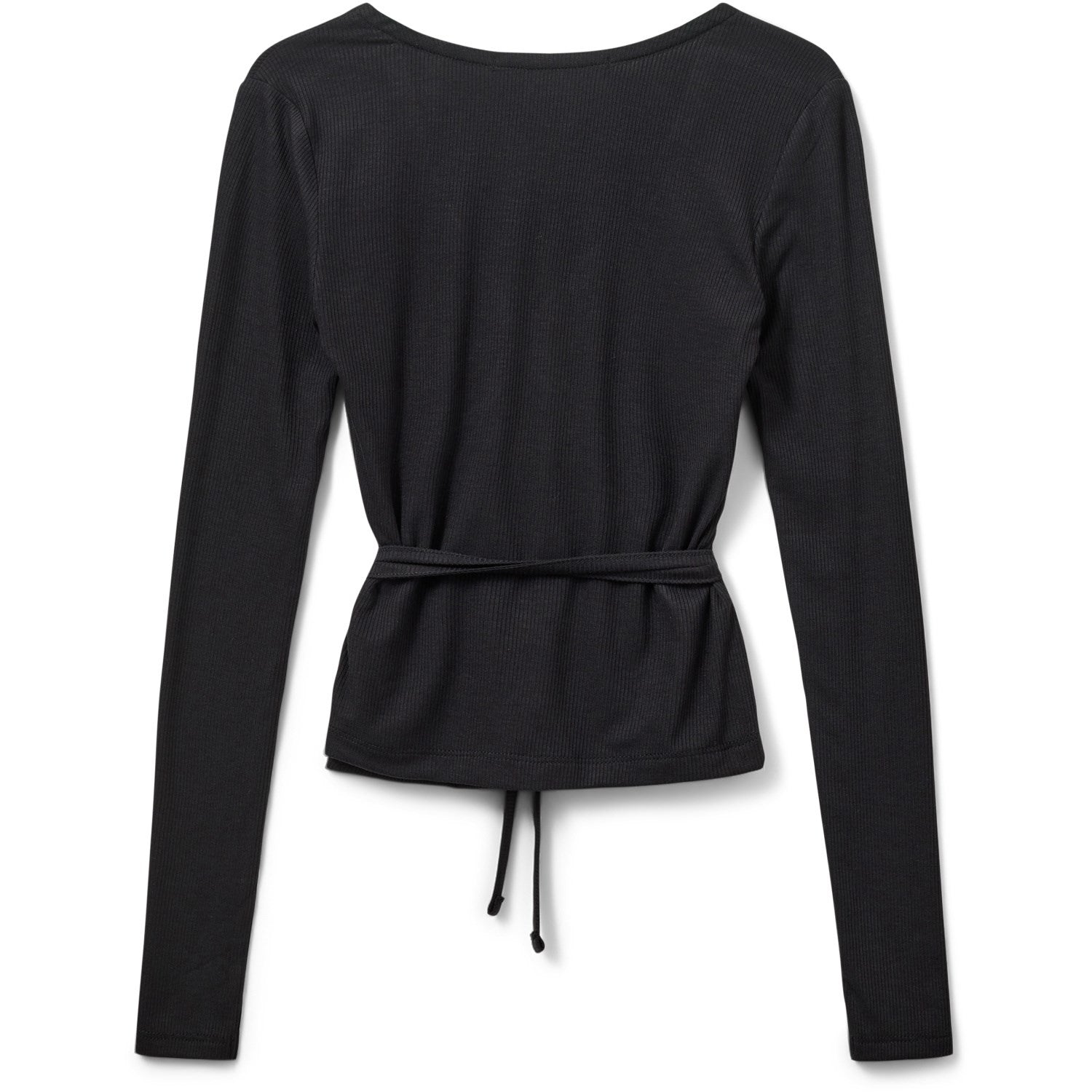 - Ekstra: Langermet omslagsbluse, Elastisk materiale med fin ribbestruktur, Designet med V-hals og stoffbånd i midjen