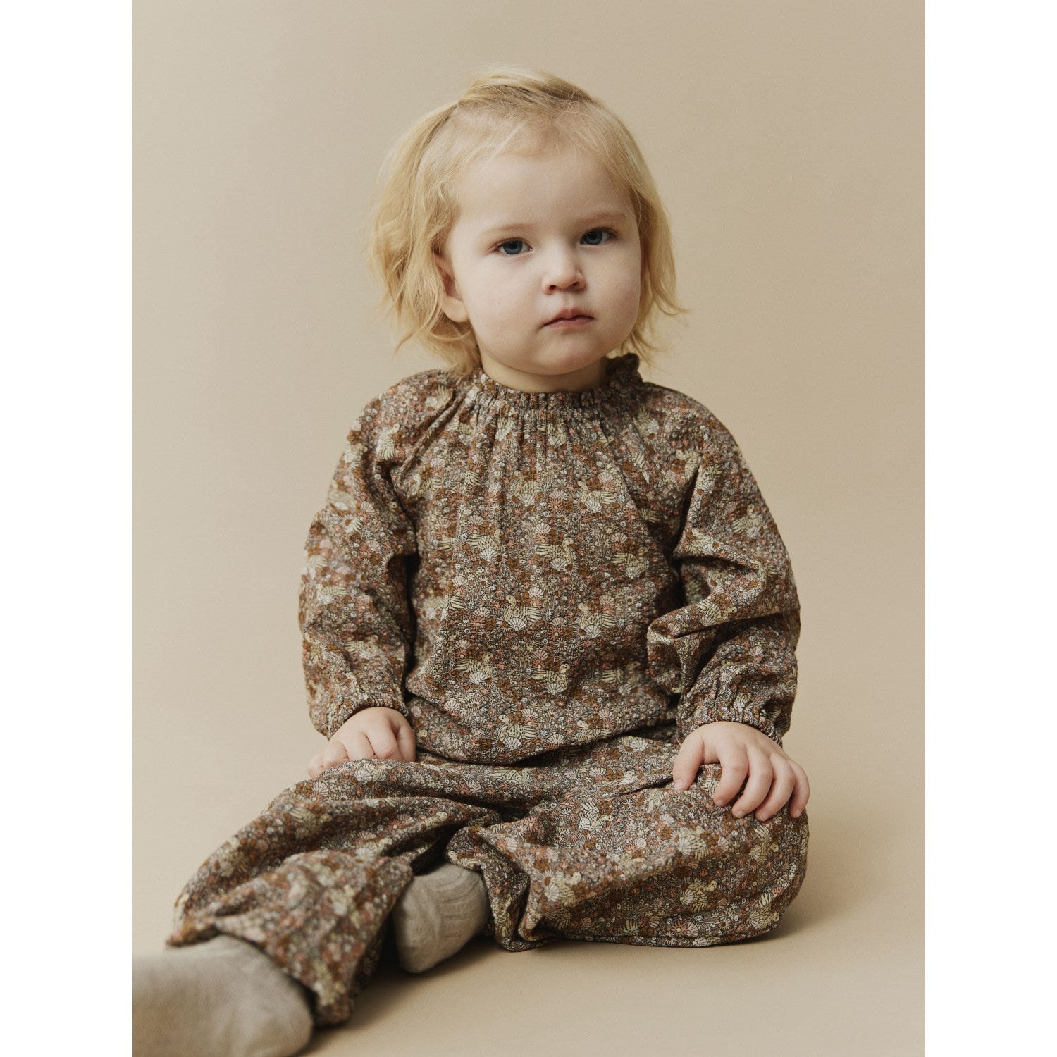 Oppdag sjarmen til Sofie Schnoor Brown KristaSB bluse som bringer naturens skjønnhet til hverdagsbruk. Denne blusen med sitt søte brune mønster av blomster og små ender vil være en favoritt i enhver liten motedesigners garderobe. Lange ermer og en komfortabel, løs passform med elastiske kanter i nakken og ermene sørger for komfort hele dagen mens du leker eller utforsker. Uimotståelig søt og praktisk for enhver anledning!