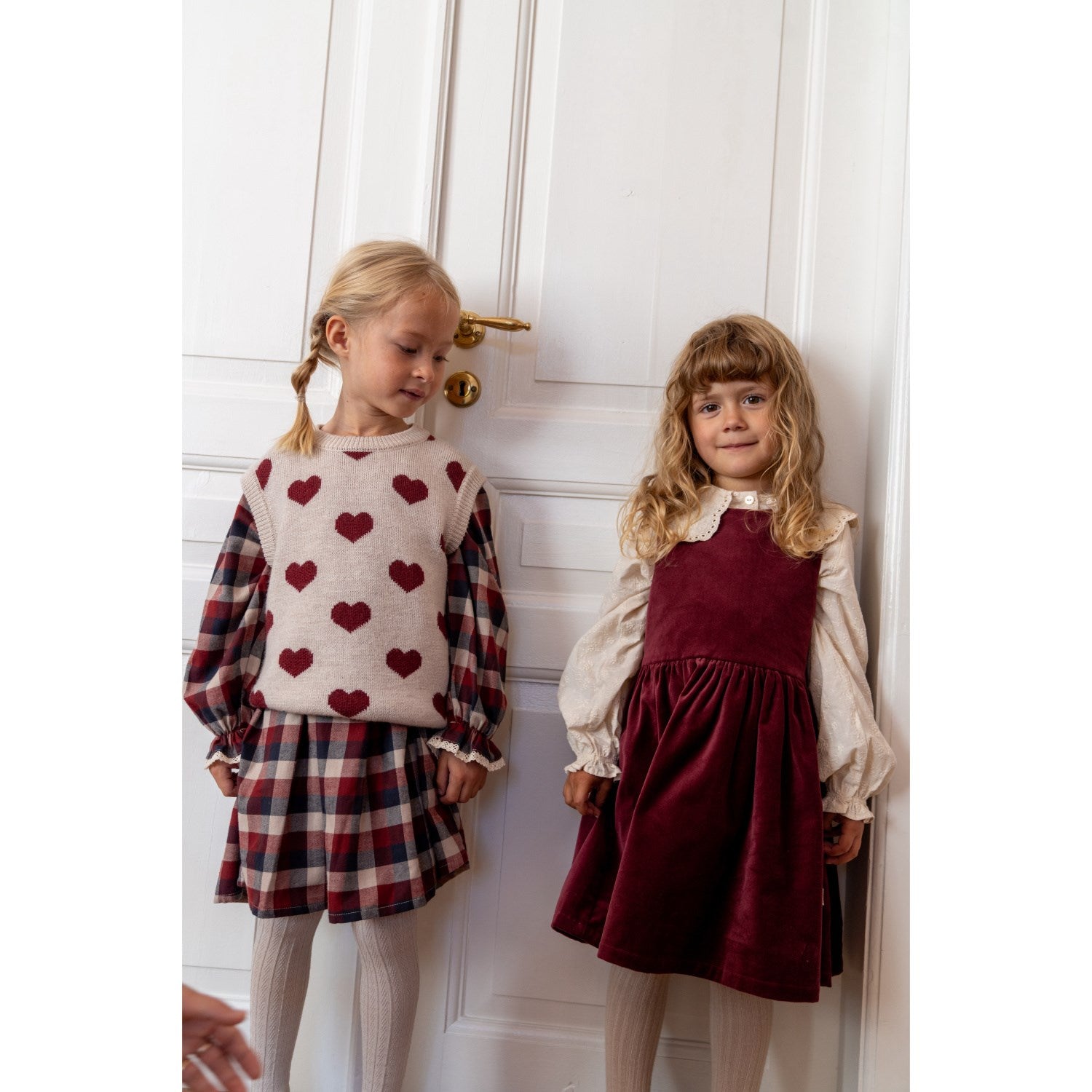 Oppdag den sjarmerende strikkevesten Gaby fra Wheat, perfekt for de kjølige høst- og vinterdagene. Denne vesten er laget av 100% myk merinoull som sørger for behagelig varme uten å irritere sensitiv barnshud. Med en løs passform, senkede skuldre og store ermehull gir den god bevegelighet, og ribbestrikkete detaljer i halsen, ermeåpningene og nederst tilfører stil og komfort.