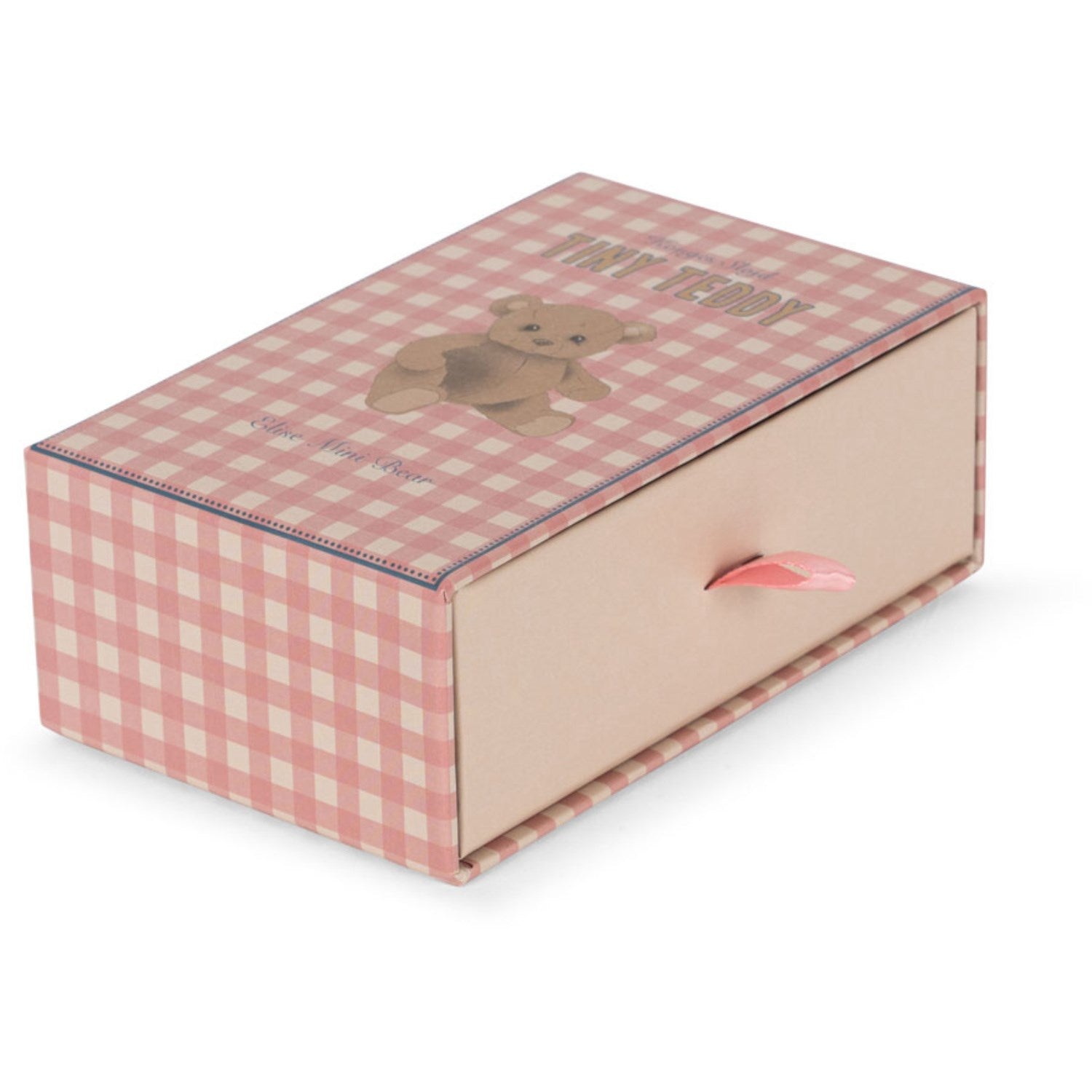Oppdag den sjarmerende Konges Sløjd Beige Elise Tiny Bjørn, en perfekt første leke for de minste. Denne søte minibamsen, kledd i en elegant sløyfe, leveres i en boks som fungerer som en trøstende seng komplett med pute og teppe. Ideell fra nyfødt og opp, denne bamse er ikke bare trygg, men også stimulerer tidlig læring og interaksjon. Lett å ta med seg og enkel å holde ren, den sikrer at både moro og hygieniske behov er dekket.