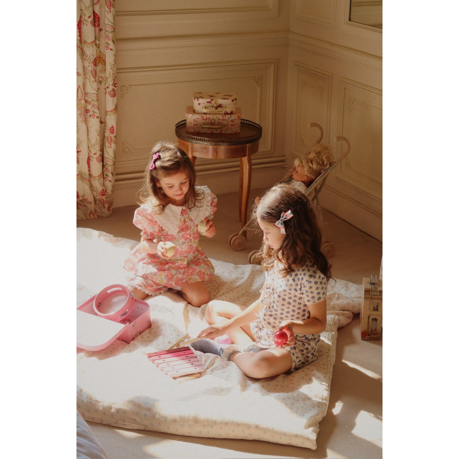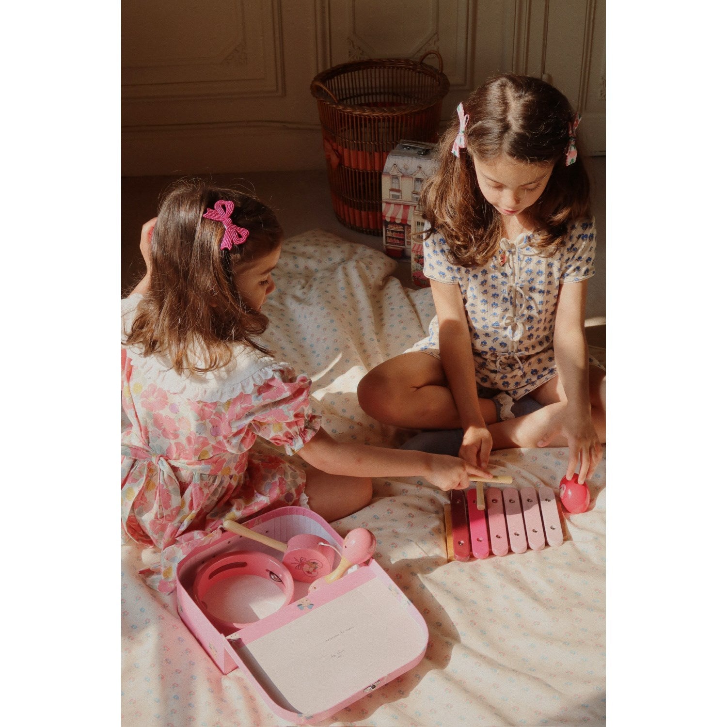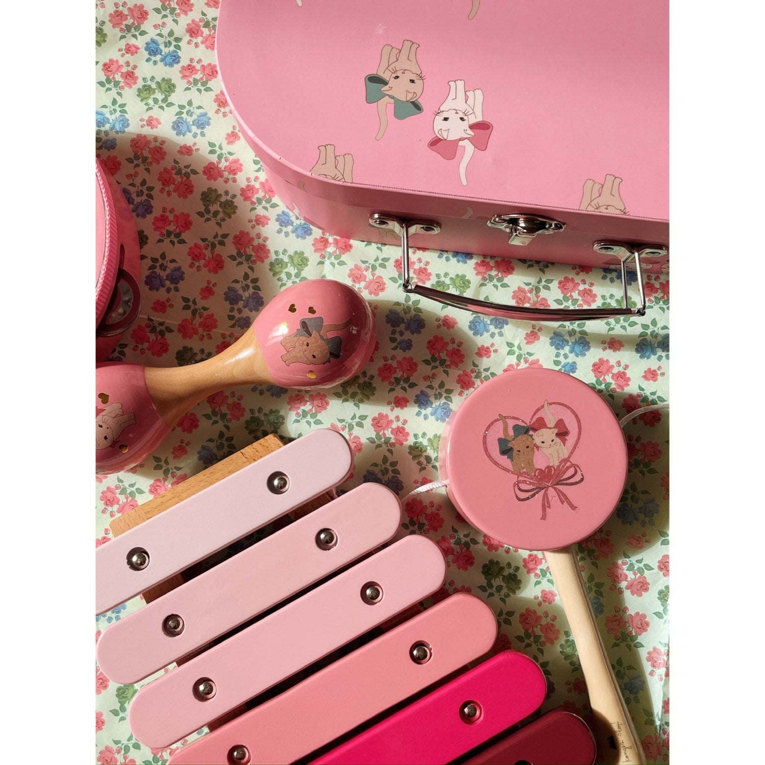 Oppdag gleden ved musikk med Konges Sløjd Bue Kitty Wooden Musikk Sets, et ideelt startsett for de minste musikerne. Disse trygge og holdbare instrumentene, laget av FSC-sertifisert bøketre og teved, garanterer timevis med kreativ lek. Settet inkluderer maracas, xylofon, håndtromme og tamburin, perfekt tilpasset barn fra 3 år og oppover. Den medfølgende dekorative snøreposen gjør det enkelt å oppbevare og ta med seg instrumentene. Inspirer barnets musikalske reise og fremme deres kognitive utvikling med dette charmerende musiksettet.