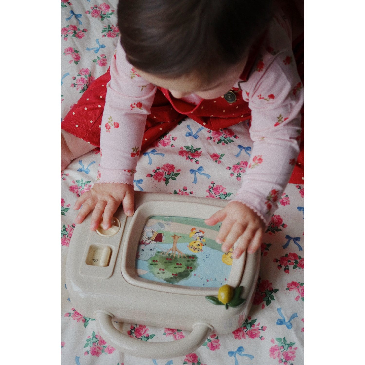 Oppdag gleden ved Konges Sløjd Lemon My Melody Tv, den perfekte musikkmobilen for småbarn. Denne sjarmerende leken vekker nysgjerrigheten hos de minste med en bevegelig skjerm som aktiveres av en enkel vri mot klokken. Beroligende lyder følger de livlige bildene, som stimulerer barnets sanser og kognitive utvikling. Lett å bruke og ideelt for aldersgruppen 0 år og oppover, denne musikkmobilen er også enkel å oppbevare og vedlikeholde, noe som gjør den til en praktisk tillegg i ethvert barnerom.