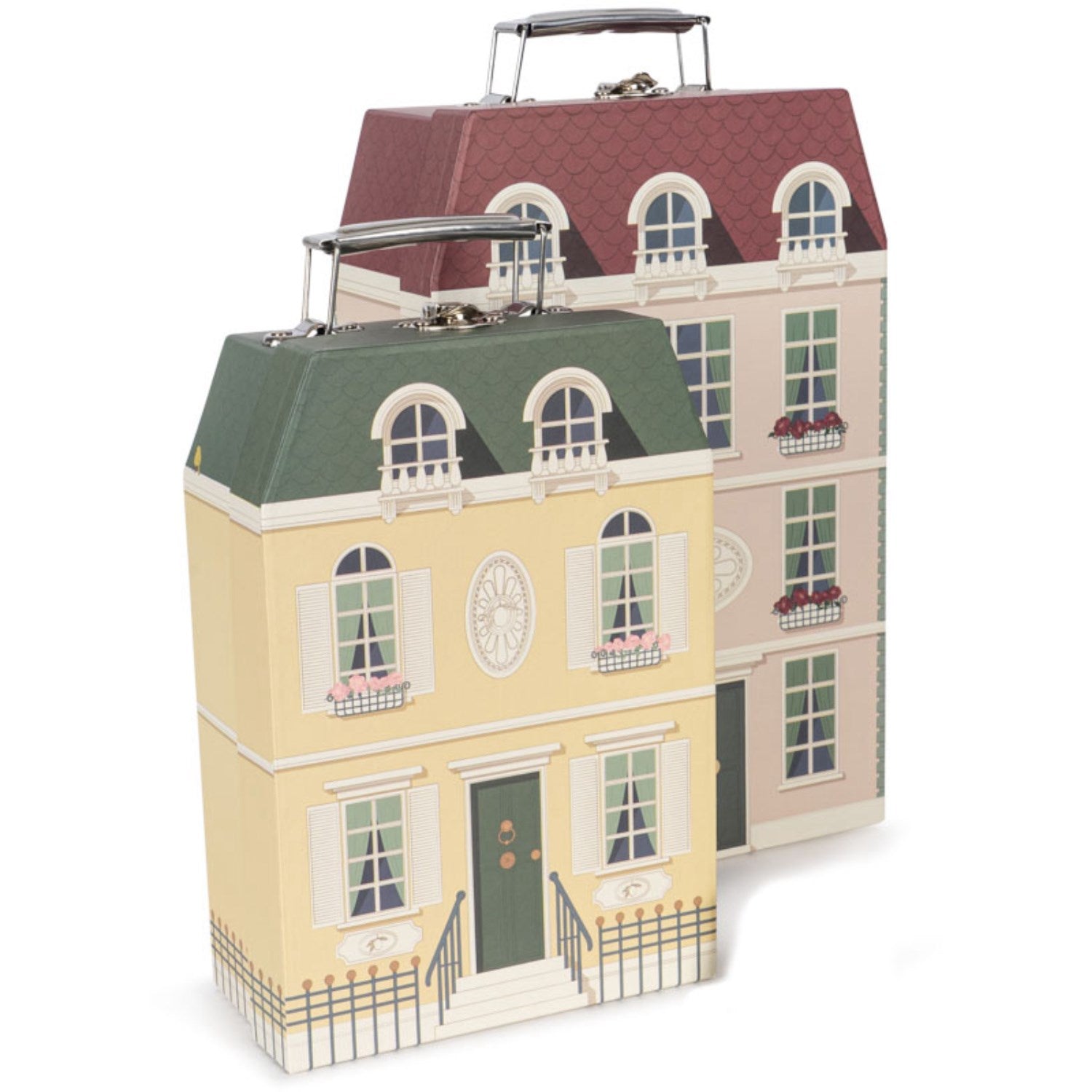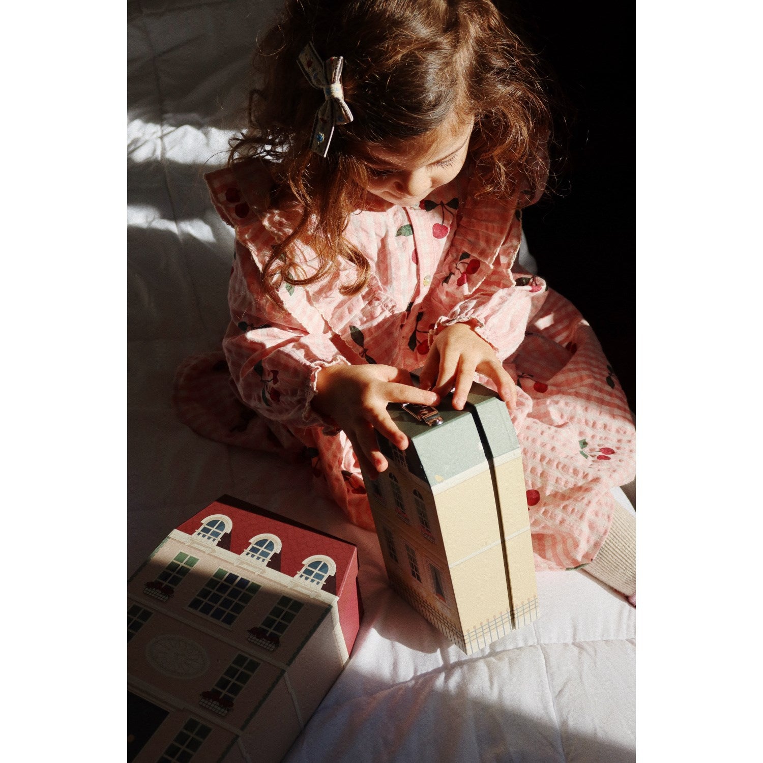 Oppdag de sjarmerende Konges Sløjd Multi Boutique Hotel Spille Kofferter, perfekt tilpasset ethvert barnerom. Dette er et sett med to nydelige pappkofferter, designet til å fremstå som boutiquehoteller, som ikke bare tilfører stil til rommet, men også er funksjonelle og stimulerende for barna. Den lille kofferten kan enkelt oppbevares i den større, noe som gjør dette settet ideelt for å lære barna om organisering og sortering samtidig som de har det gøy.