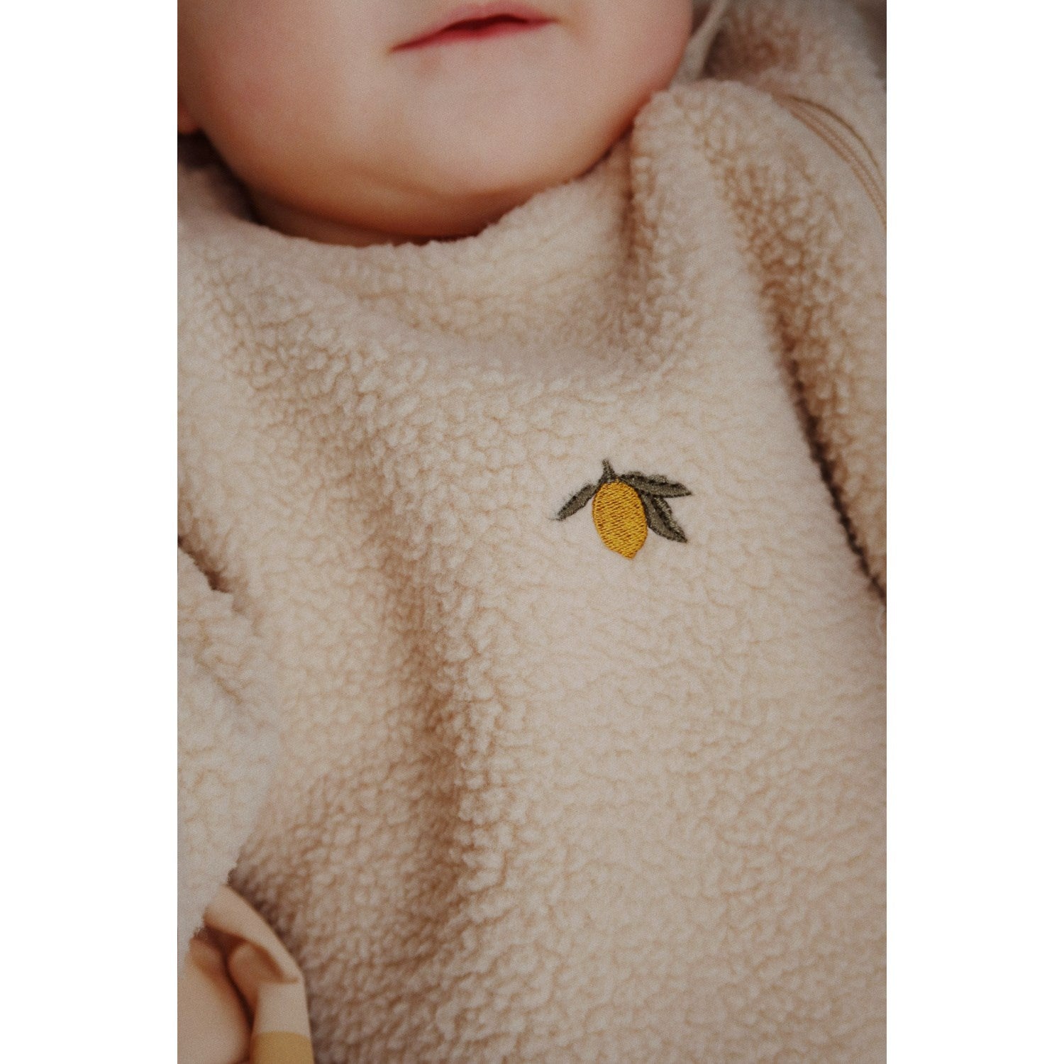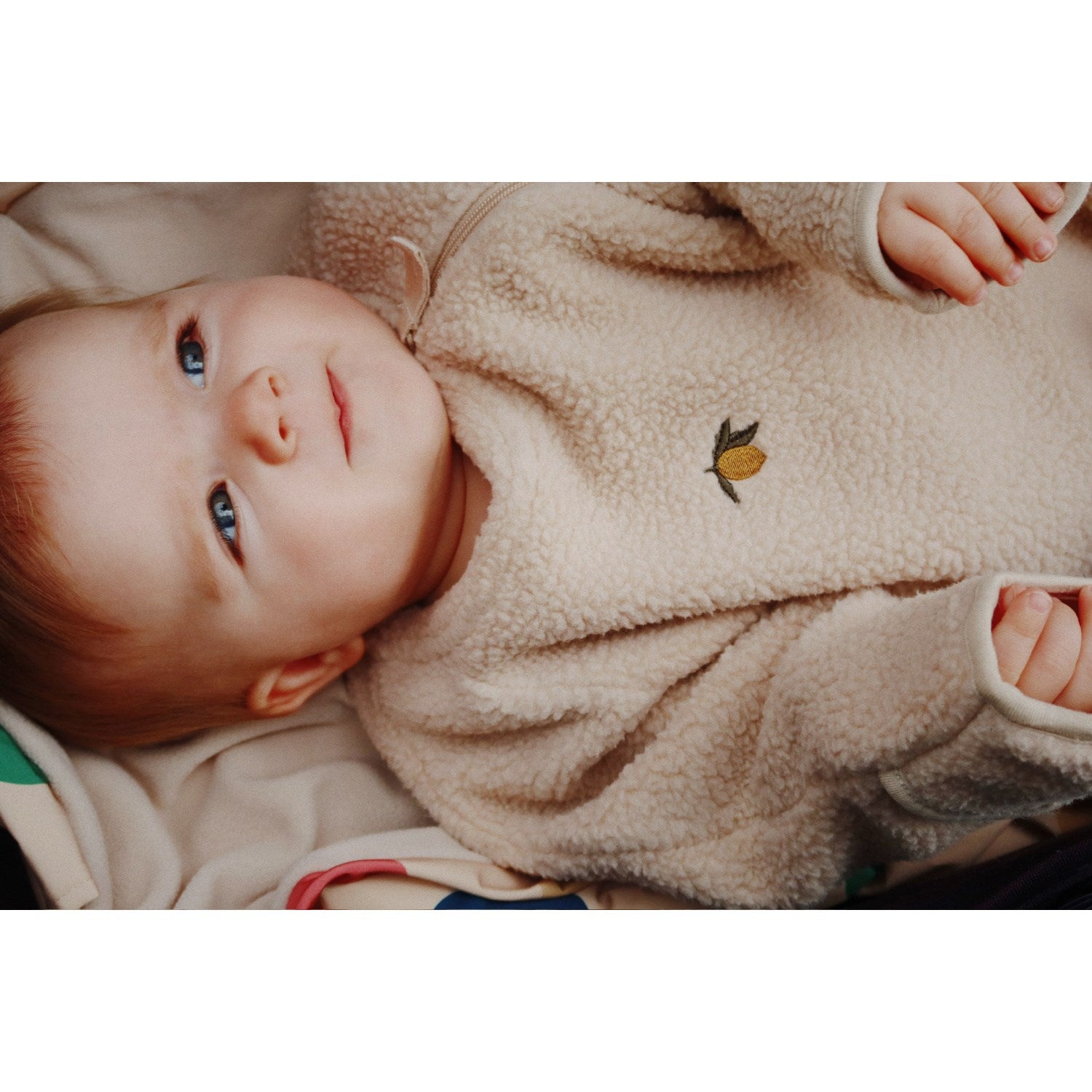 Oppdag Konges Sløjd Oxford Tan Safa Onesie Grs, en kjøredress perfekt for de små. Denne onesien er laget av et behagelig haugmateriale som føles mykt mot huden. Designet inkluderer praktiske, sammenleggbare mansjetter på hender og føtter, noe som holder babyen varm og komfortabel. Den neutrale fargen og det stilige mønsteret gjør den til et allsidig tillegg i enhver babygarderobe. Ideal for både hverdagsbruk og spesielle anledninger, denne onesien kombinerer stil med funksjonalitet og komfort.
