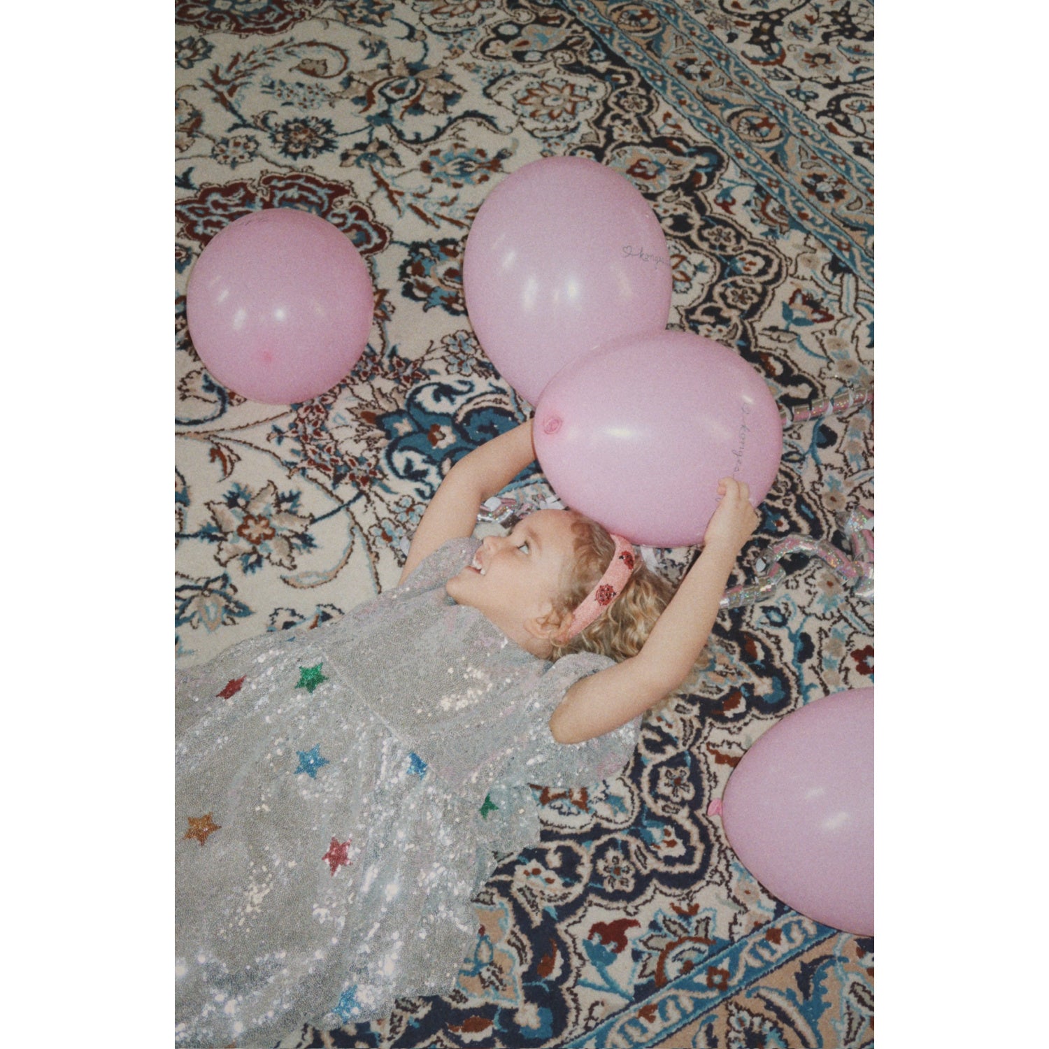La barnet ditt skinne i enhver sammenkomst med vår Konges Sløjd Starla Star Dust kjole. Denne yndige kjolen er utformet med sølvfargede paljetter og har en flatterende, innsvinget midje og en rund hals som framhever den stilige silhuetten. Skjørtet er utvidet som gir et lekent preg, og det komfortable designet sikrer at de små kan leke fritt og ubesværet. De holdbare materialene og lette vedlikeholdsanvisningene gjør Starla-kjolen til et praktisk valg for enhver anledning.