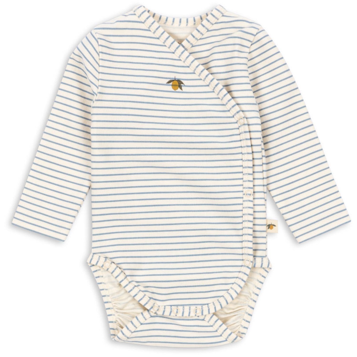 Oppdag komforten med Konges Sløjd Stripe Bluie Basic LS Newborn Body! Denne myke, langermede omslagsbodyen for nyfødte er laget av GOTS-sertifisert materiale, sikrende hållbar kvalitet og miljøvennlighet. Med sitt stilige stripemønster og behagelige passform, gjør denne bodyen det enklere for småbarnsforeldre under påkledning. Maskinvaskbar for enkel vedlikehold. Den perfekte kombinasjonen av stil, komfort og praktisk funksjonalitet for ditt barns første garderobe.