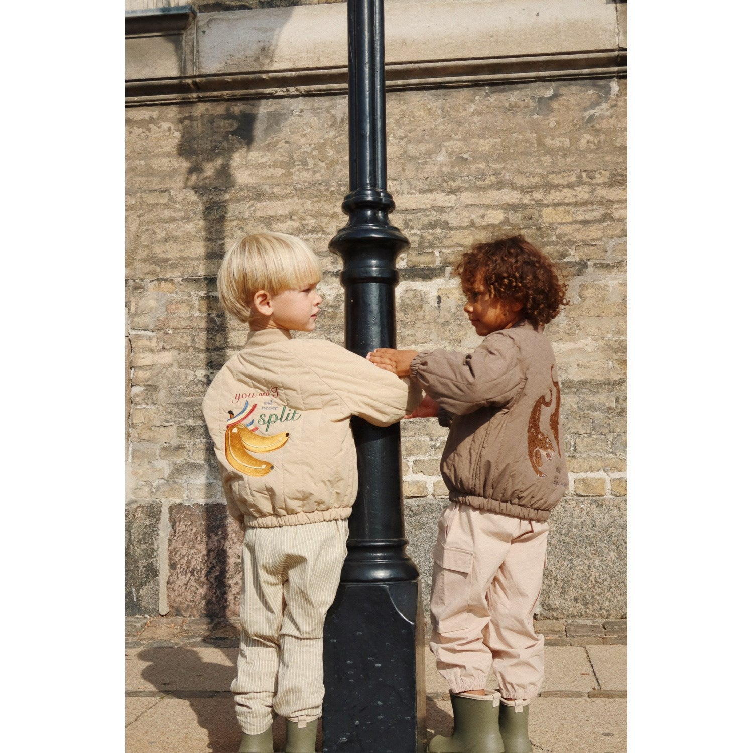 Gi barnet komfort og stil med Konges Sløjd Walnut Juno Bomber Jakke. Denne termojakken i klassisk design er lett og behagelig, med varm polyesterpolstring som gir effektiv isolasjon. Takket være en pustende, fluorfri impregnering er den også vind- og vannavvisende, perfekt for all slags lek utendørs. Ideell for kalde dager, denne jakken sørger for at de små holder seg varme og tørre uten å gå på kompromiss med bevegelighet eller stil.