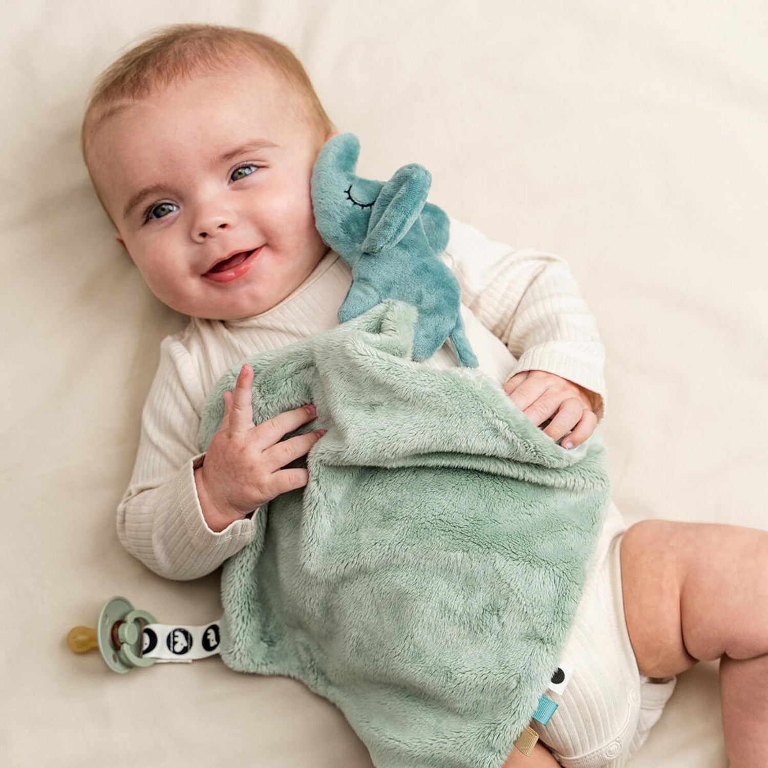 Gi din lille skatt den ultimate trøst med DonebyDeer Elphee Blue Koseklut. Denne supermyke og skånsomme kosekluten er designet for å gi både kos og komfort. Med et praktisk borrelåsklips holder den smokken lett tilgjengelig, mens de varierte teksturene og de lekne taggene stimulerer barnets sanser. Dette er en ideell følgesvenn fra spedbarnsalder som også kan bidra til å utvikle motoriske ferdigheter gjennom taktil lek.