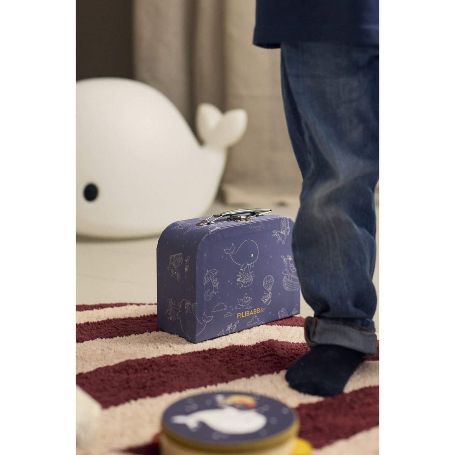 Når leken er over, kan instrumentene enkelt oppbevares i den medfølgende kofferten. Denne er ikke bare praktisk for lagring og transport, men også sjarmerende illustrert, noe som gjør den til en attraktiv del av barnerommet.