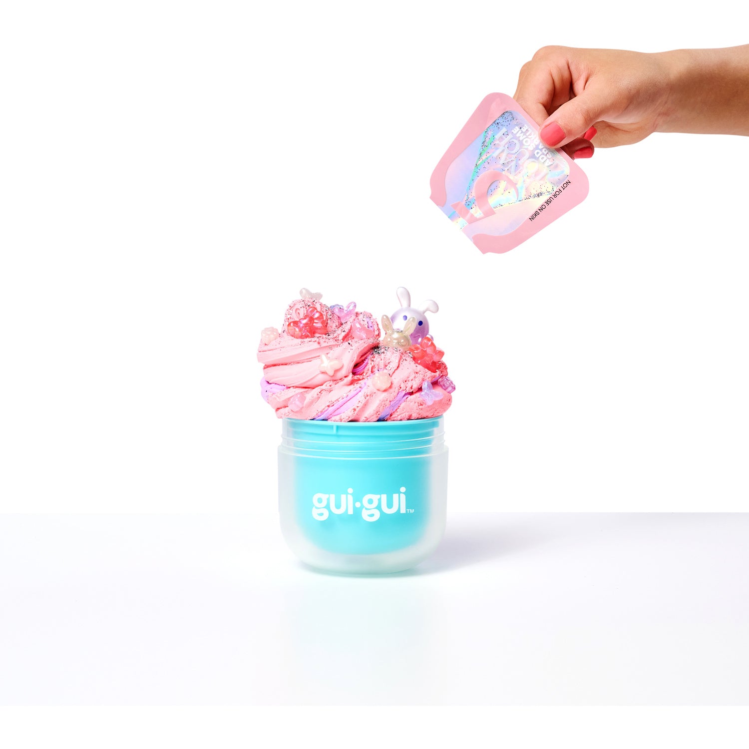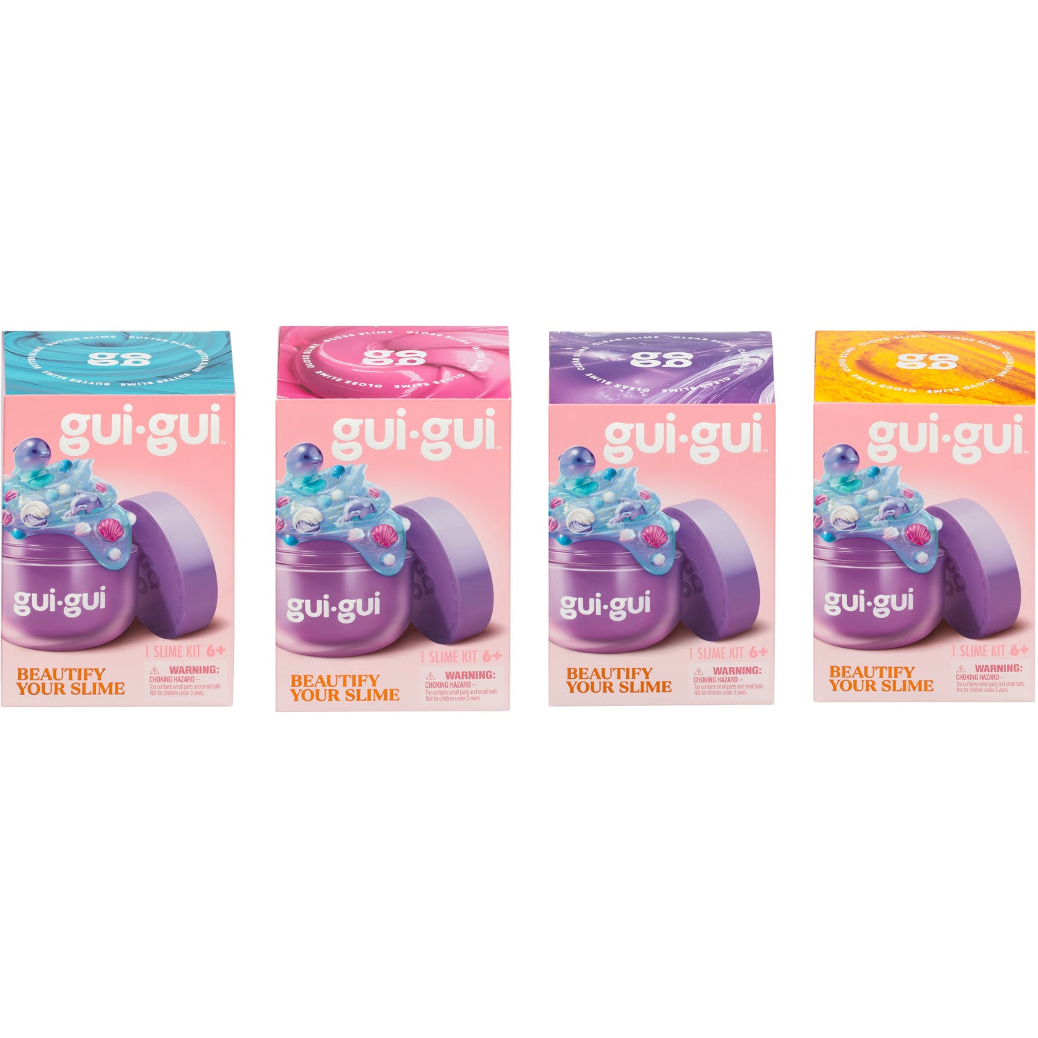 - Ekstra: Skjønnhet møter slim. Opplev det nyeste innen sanselek med GUI GUI Slime! Inspirert av skjønnhetens verden – dens farger, dufter og teksturer – tilbyr denne serien en unik unboxing-opplevelse. Velg mellom fire herlige teksturer: Gloss, Clear, Butter og Cloud – hver med overraskende farger, dufter og sjarm. Hver pakke inkluderer også en søt samlefigur og glitter for å fullføre kreasjonen din. Perfekt for barn på 6+ år som elsker kreativ lek og overraskelser.