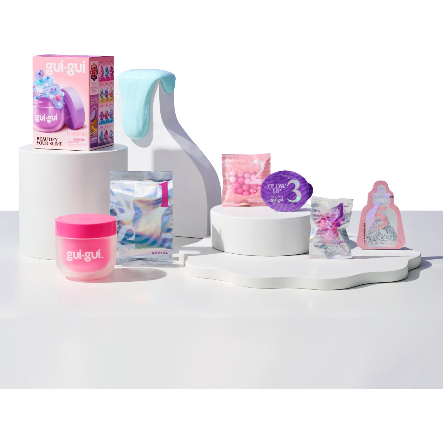 Utforsk magien i GUI GUI Slime CDU, en modellervoks og slimserie som fenger barnets sanser med sine livlige farger og herlige dufter. Denne serien er inspirert av skjønnhetsverdenens fineste elementer og tilbyr barn fra 6 år og oppover en kreativ og sanseberiket lek.