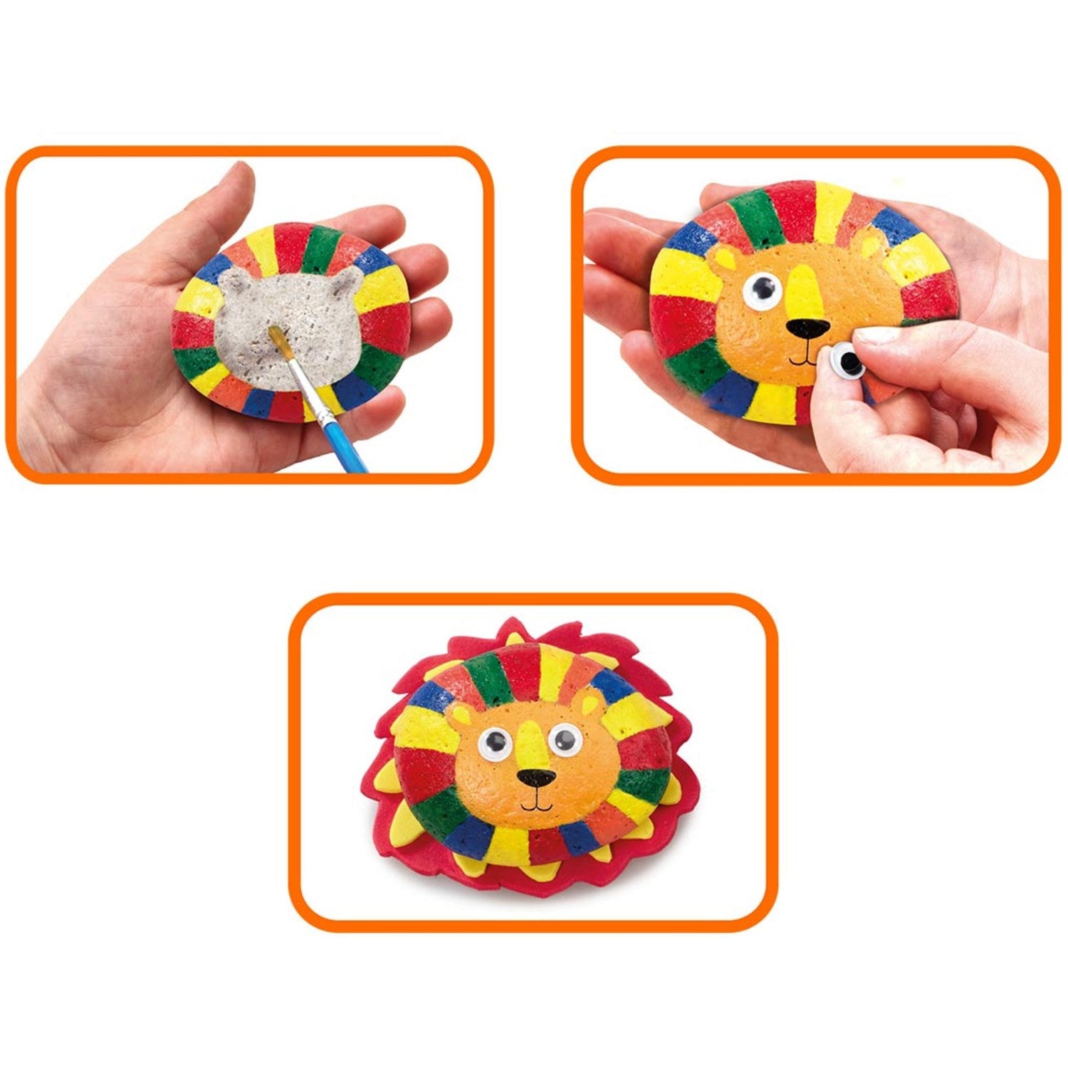 Fargerikt og fantasifullt, Out Of The Box Mal Dyr På Sten hobbysett engasjerer barn i kreativ lek og lærer dem om kunstens verden. Dette settet er designet for sikker bruk av barn fra fem år og oppover, og inneholder alt som trengs for å male og dekorere steindyrene. Det er enkelt å bruke, lett å bære med seg, og alt materialet kan lagres i den medfølgende esken etter lek. La ditt barn utforske sin kunstneriske side samtidig som de utvikler finmotoriske ferdigheter gjennom maling og dekorasjon!