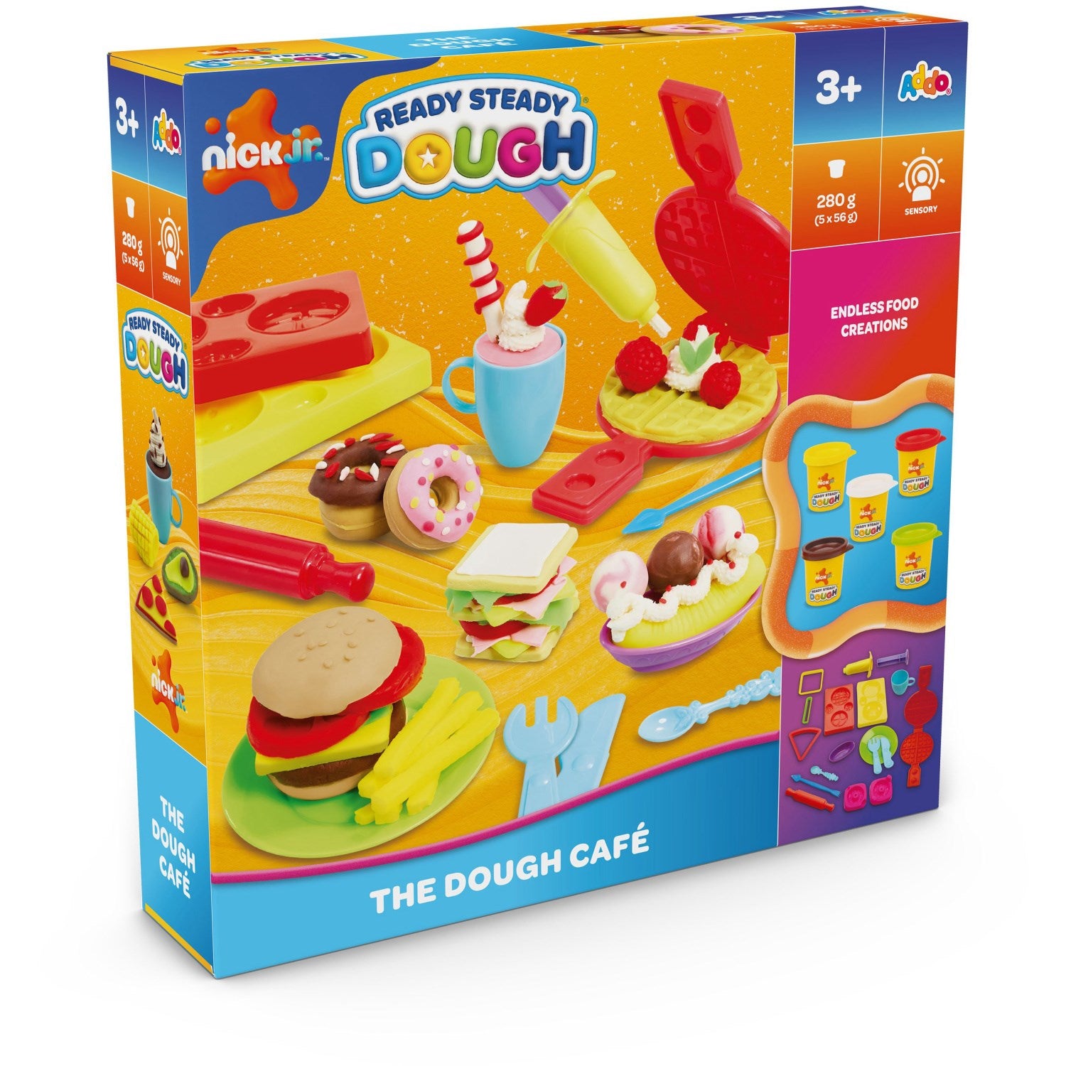 Lag morsomme og fargerike matretter med Ready Steady Dough The Dough Café! Dette settet er perfekt for små kokker fra 3 år og oppover, og inviterer til kreativ lek med trygg og enkel å bruke modellervoks. Barna kan forme alt fra smultringer til pølser og vafler med de medfølgende formene, og en rekke verktøy som rullepinne og skjæreverktøy gjør leken enda mer realistisk. Med formene og fargekartet kan barn også utvikle sine fargeblandingsevner og rollespilleferdigheter, noe som stimulerer både kreativitet og læring. Pakken inkluderer alt som trengs for å starte kafeen, og alle komponentene er enkle å oppbevare og vedlikeholde, noe som gjør rydding like enkel som selve leken.