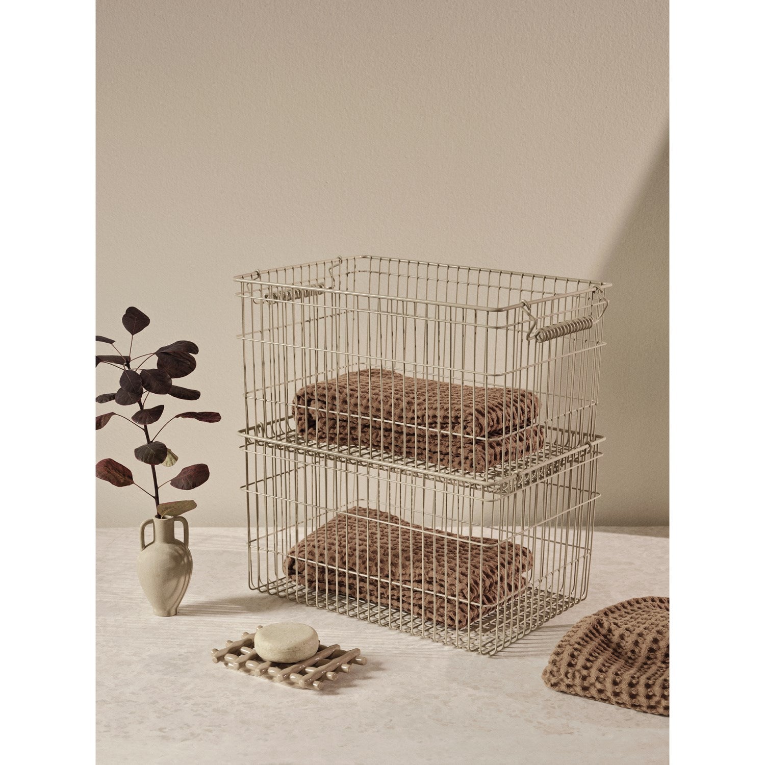 Cala-kurvene fremhever praktisk oppbevaring med sitt stablebare design som lett tilpasser seg etter behov, enten det er for leker, bøker eller kunstutstyr. Dette sørger for at rommet forblir ryddig og organisert, samtidig som det sparer plass – perfekt for de dynamiske behovene i en barns hverdag. Det karakteristiske spiralhåndtaket i metall er ikke bare et stilfullt tilbehør; det gjør også kurvene enkle å løfte og flytte rundt, selv for små hender.