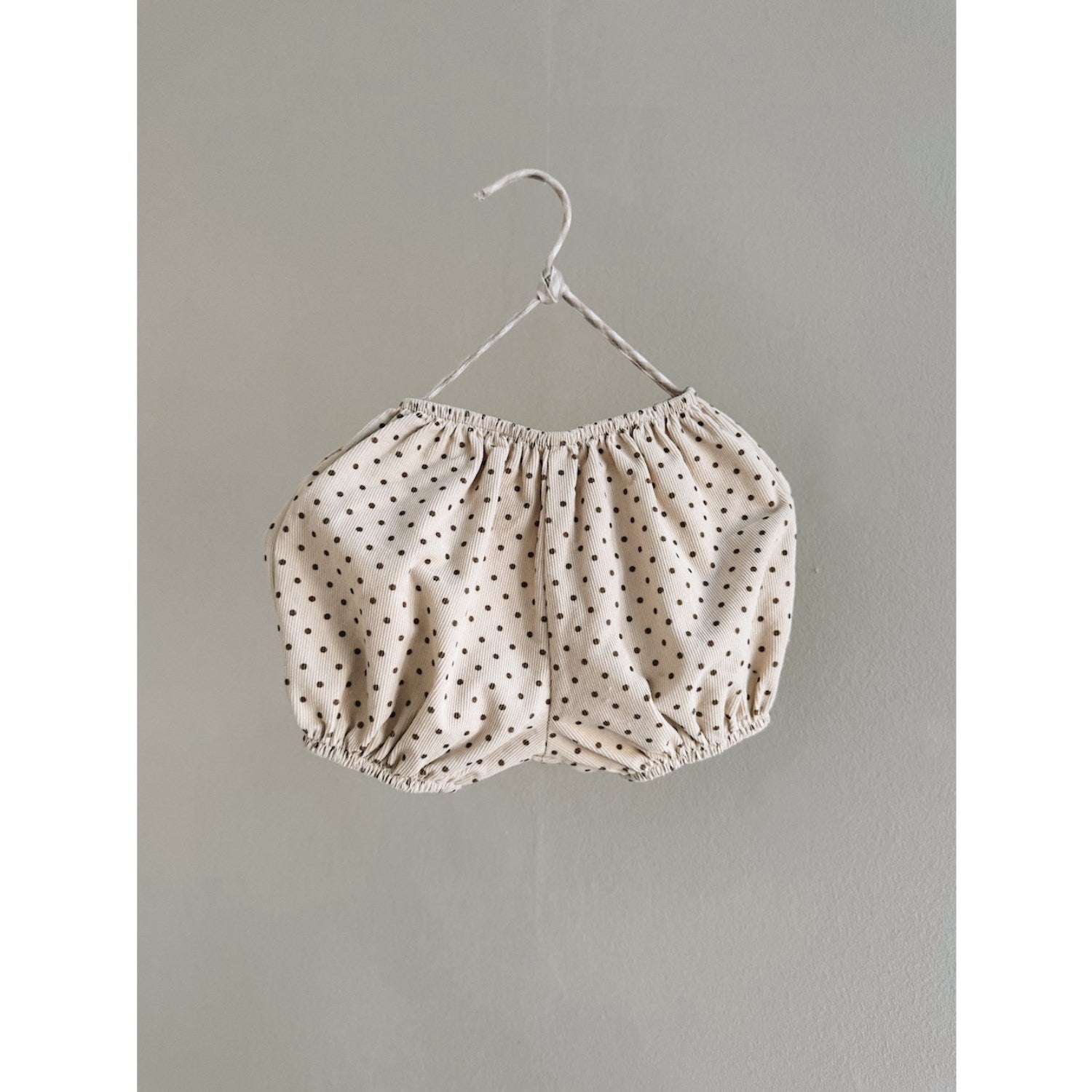 Oppdag våre sjarmerende Lalaby BrownDot Nelly Bloomers - perfekte for den lekne smårollingen! Disse bloomerne er laget av mykt og behagelig materiale, designet med en stilfull brun med prikkemønster. Ideell passform og fleksibilitet sikrer at barnet ditt kan bevege seg fritt, mens den enkle vaskbarheten gjør vedlikeholdet lett som en pust. En perfekt kombinasjon av stil og funksjonalitet for hverdagslige eventyr!