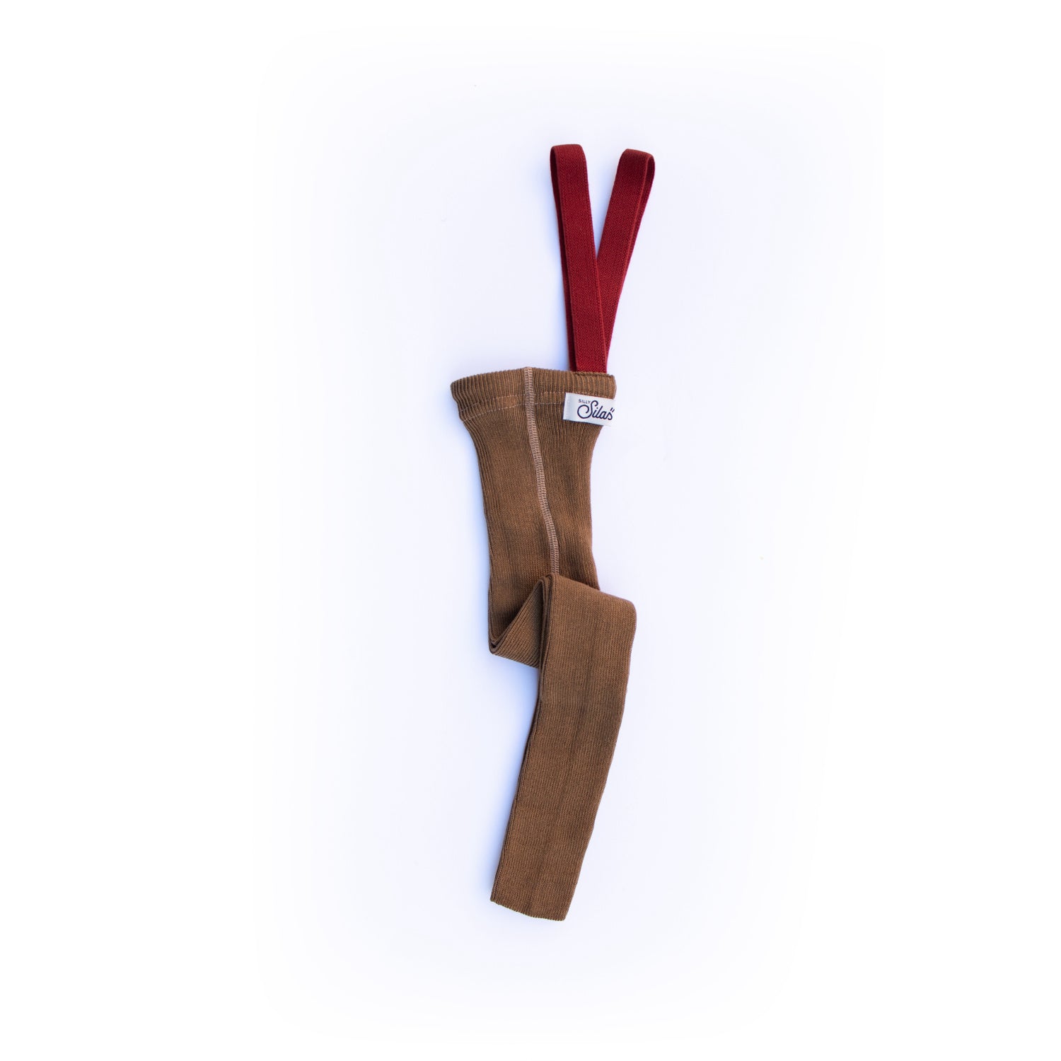 Oppdag Silly Silas Acorn Brown fotløse strømpebukser med seler i ren bomull. Denne juleutgaven fanger oppmerksomheten med sitt fortryllende lønnebladmønster og dype nøttebrune farge. Designet forener stil med komfort, og tilbyr en perfekt passform for aktive barn. Enkel å vaske og ideell for både fest og lek.
