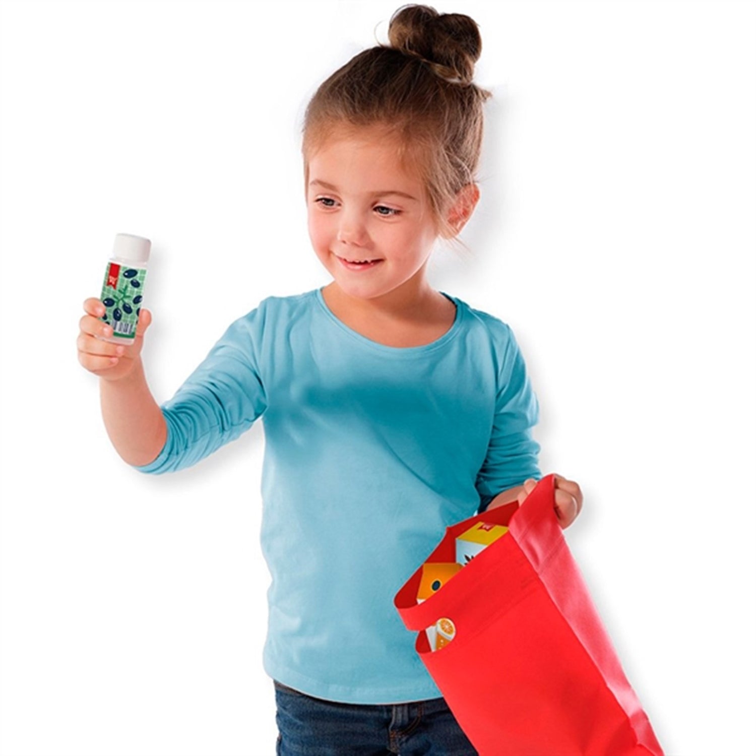 - Indeholder: 30 købmandsvarer, indkøbstaske, klistermærker, legetøjsmønter og sedler