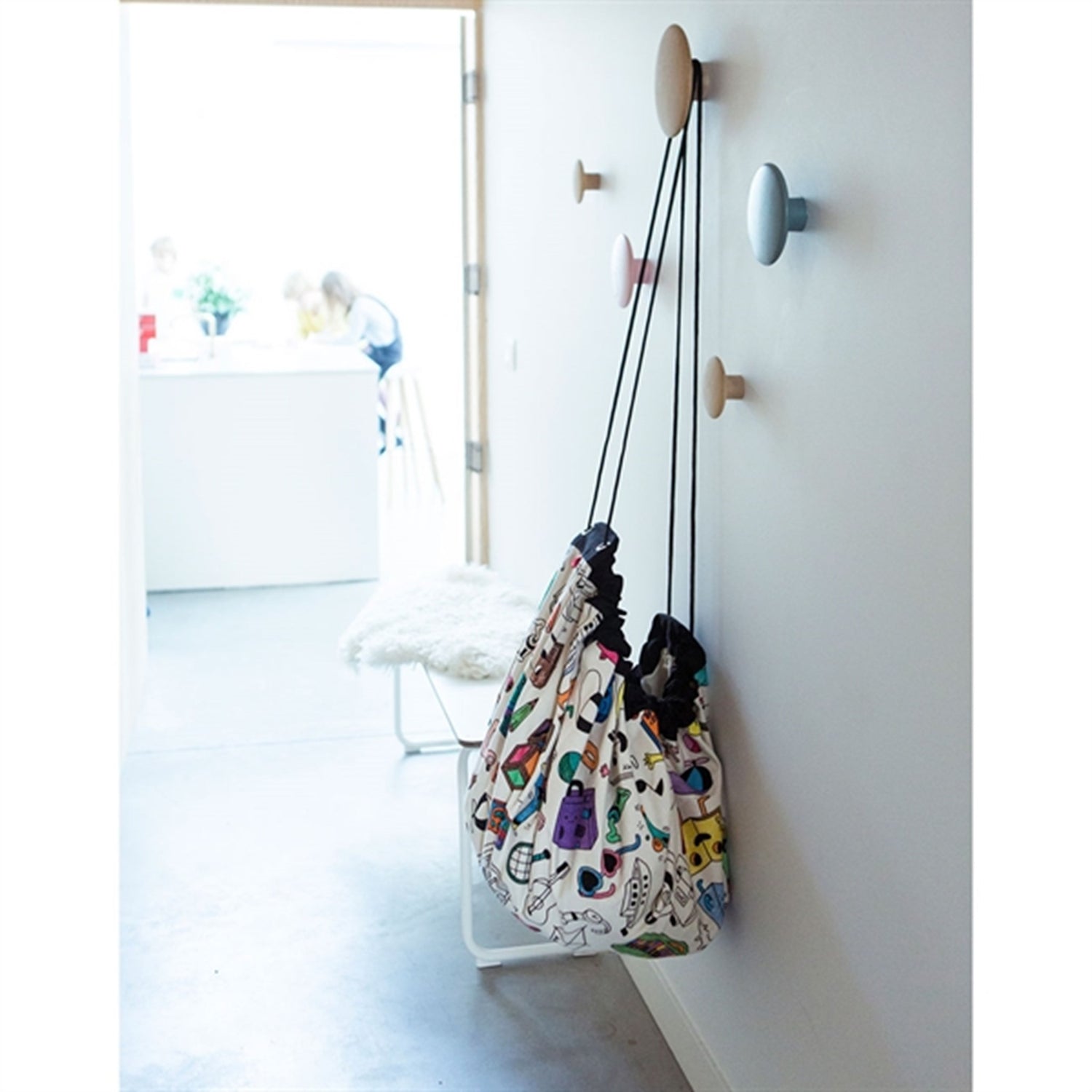 - Enkel opprydding - legg lekene på teppet og riv av snorene