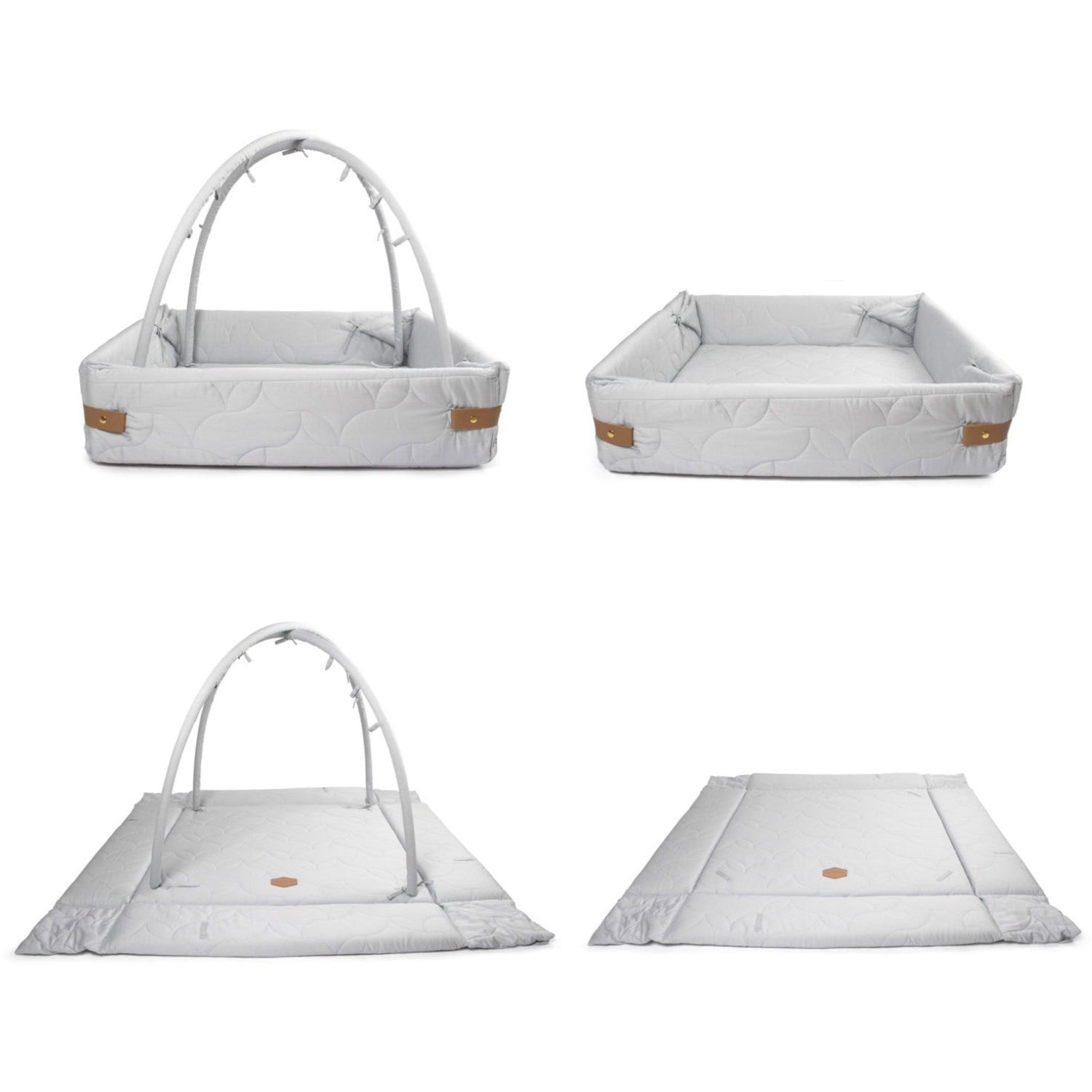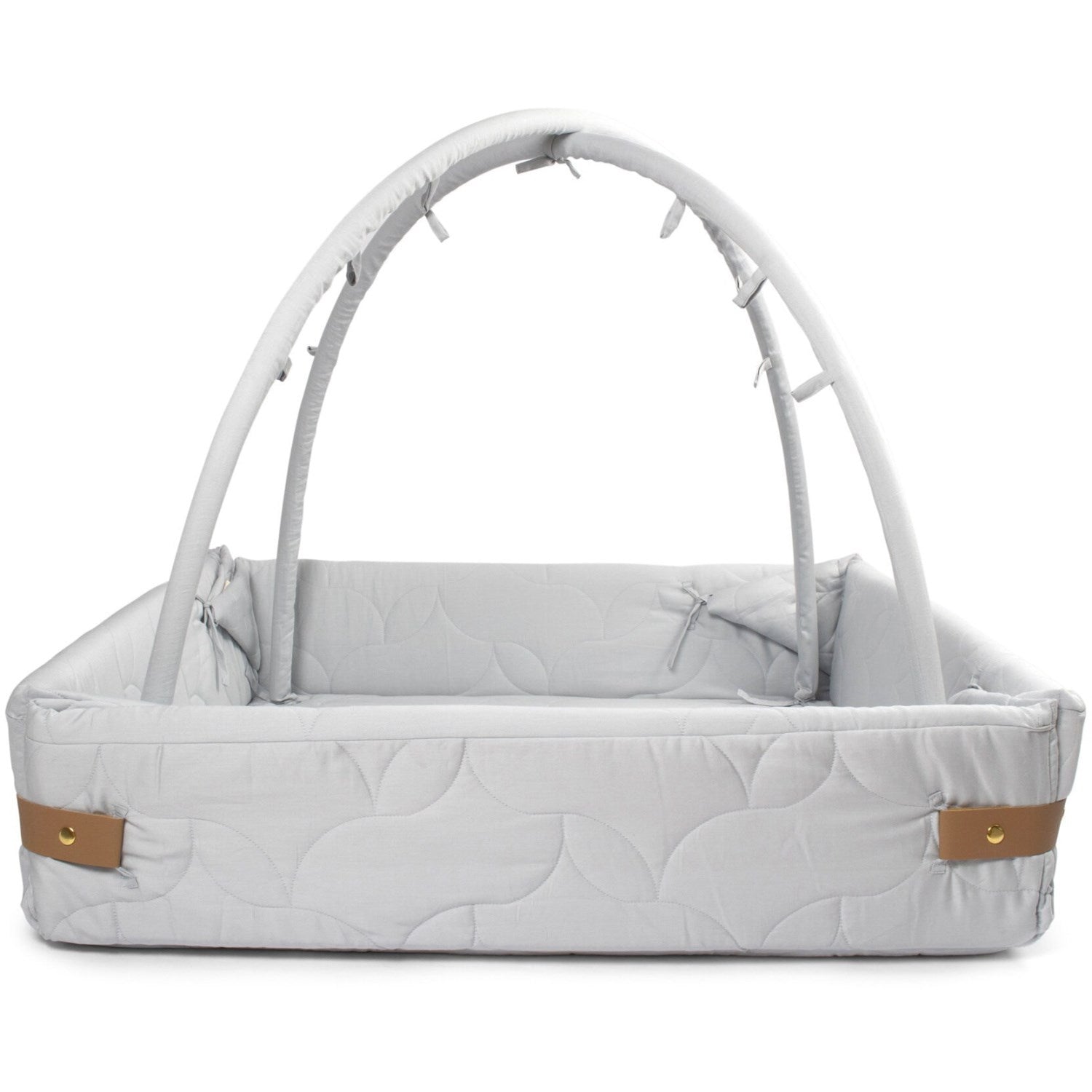 Med sitt myke, vatterte materiale av 100 % økologisk bomull, tilbyr dette aktivitetsreiret en behagelig og sikker plass for nyfødte og småbarn. Den justerbare skinnspennen gir fleksibilitet og trygghet, og lar reiret vokse sammen med barnet ditt. Det innbydende designet stimulerer til engasjement og interaktiv lek, samtidig som det gir enkel montering og tar liten plass ved oppbevaring.