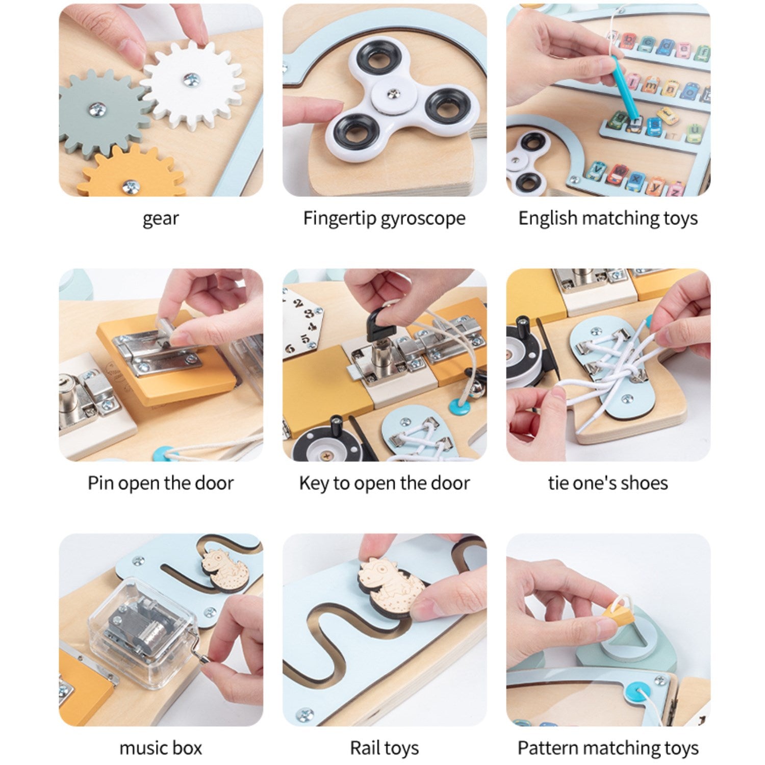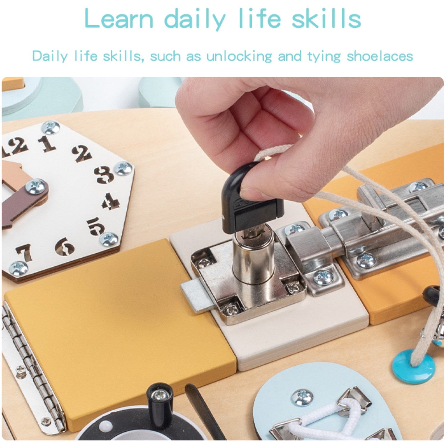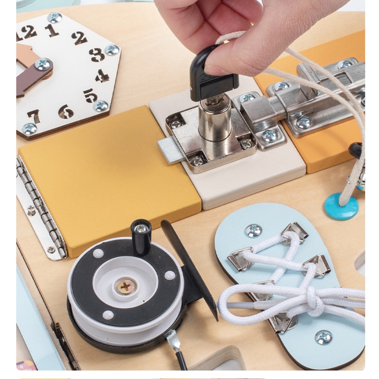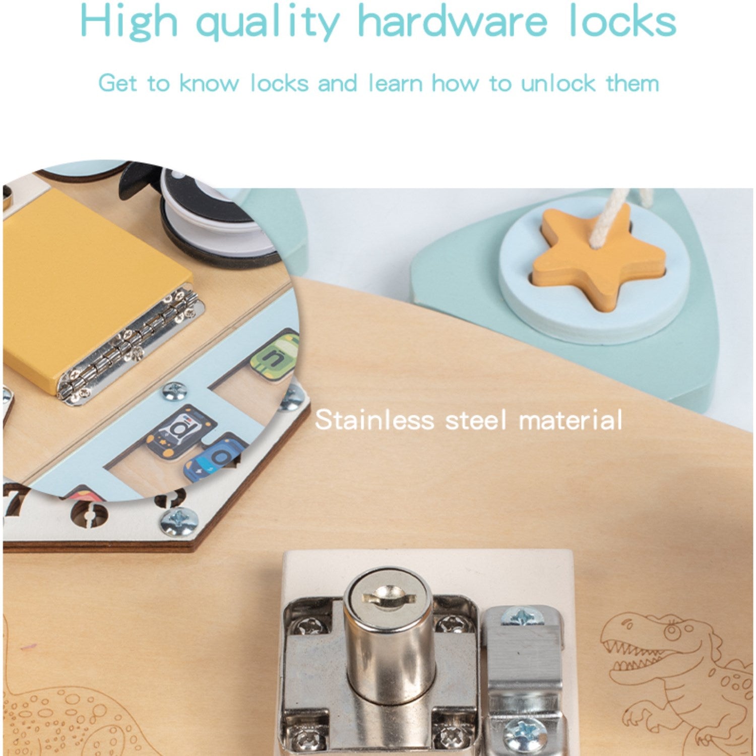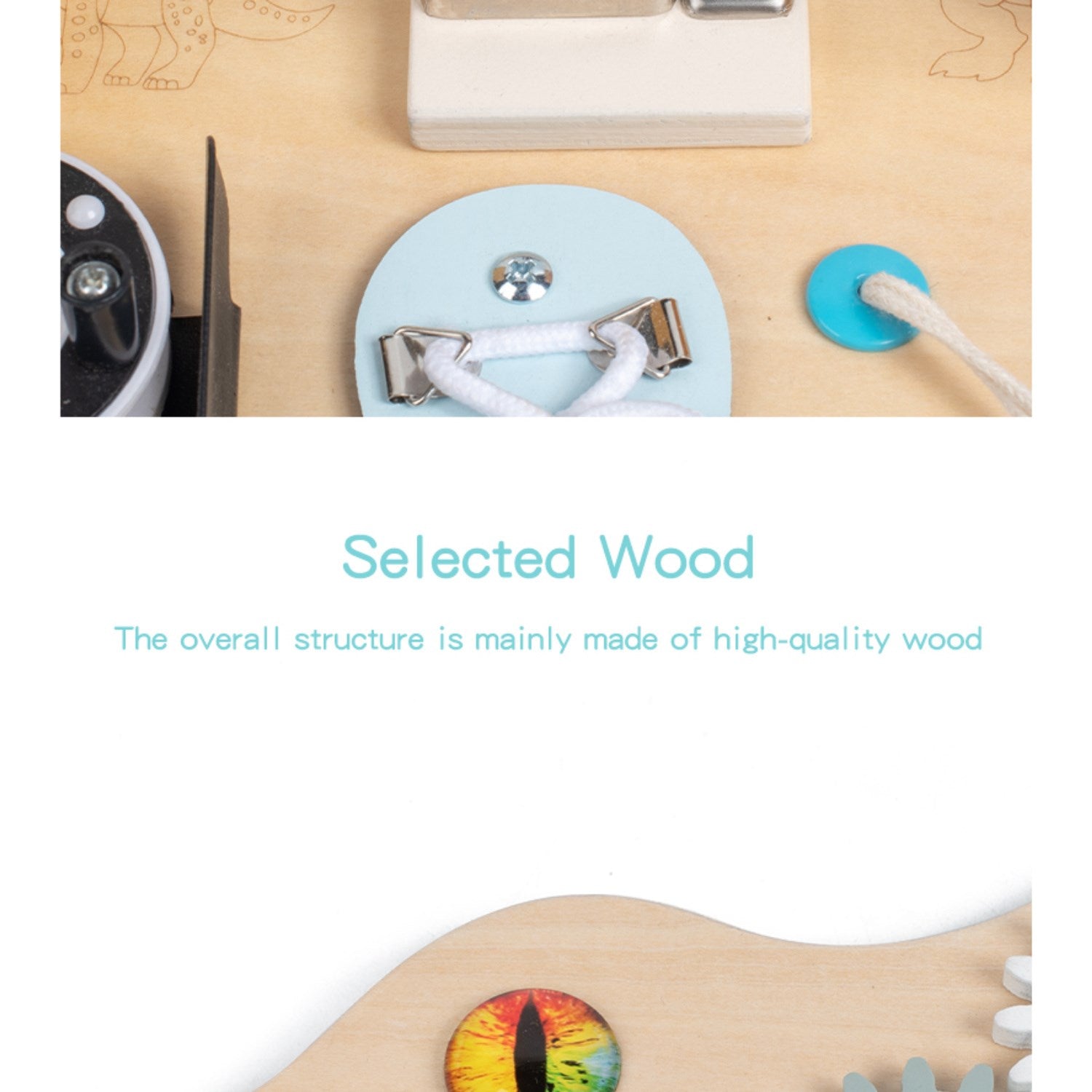 Oppdag gleden ved læring med HEMMINGSEN Kids Natur Dino Aktivitetsbrett! Dette lekenhetsrike brettet, utformet som en fargerik dinosaur, tilbyr barna timevis med engasjerende aktiviteter som tannhjul, låser, en klokke og skolisser. Ideelt for utvikling av finmotorikk og kreativ problemløsning hos småbarn. Sikkerheten er ivaretatt med robuste materialer fri for skadelige stoffer, og brettet er lett å bære og oppbevare. En utmerket måte for barnet å lære vekk fra skjermen, samtidig som det stimulerer både kognitive og fysiske ferdigheter.