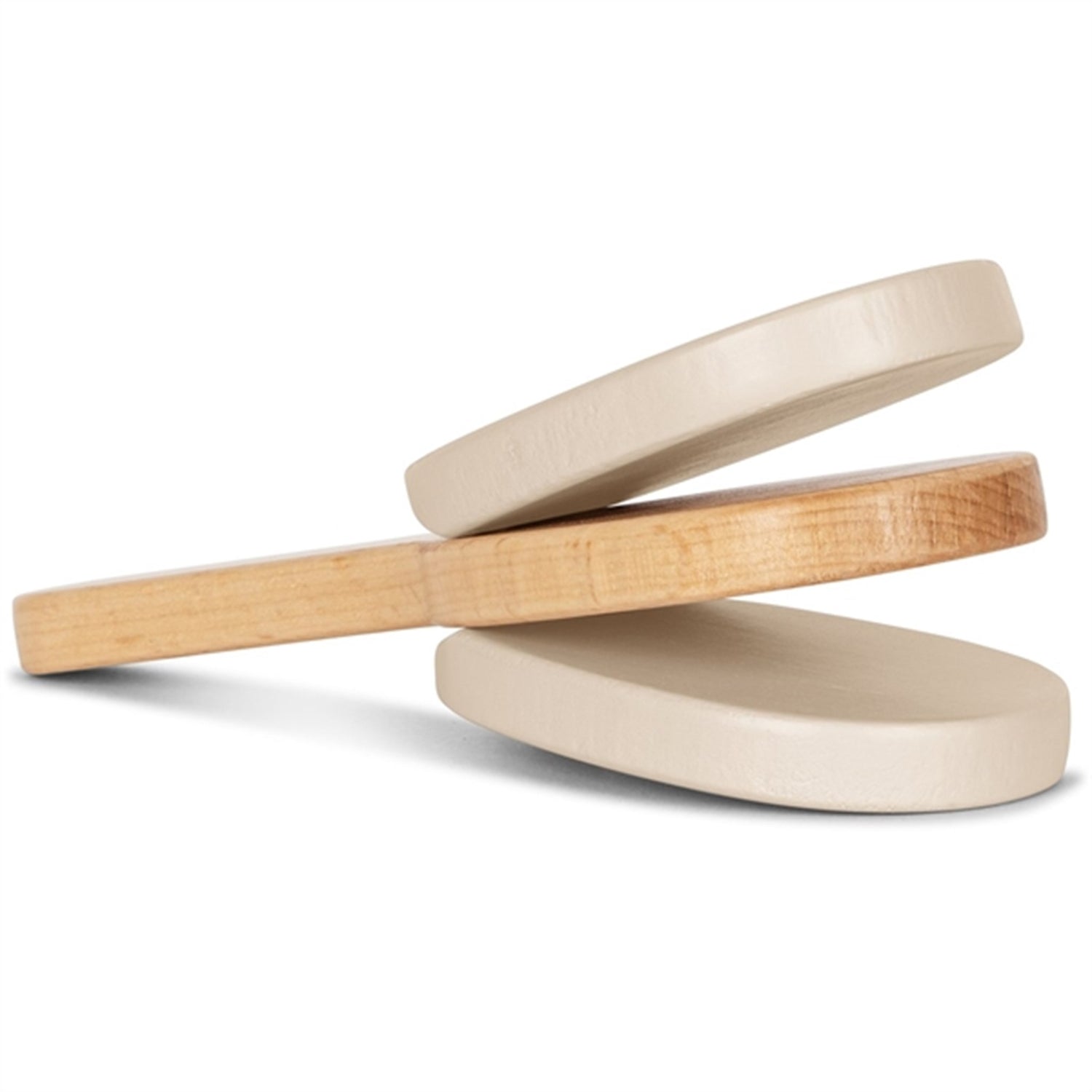 Disse instrumentene leveres i en liten koffert. Settet inneholder: 1 x tamburin, 1 x kastanjett, 1 x maracas, 1 x xylofon med trommestikker. Variabler i trefibrene kan forekomme da det er et naturlig materiale.
