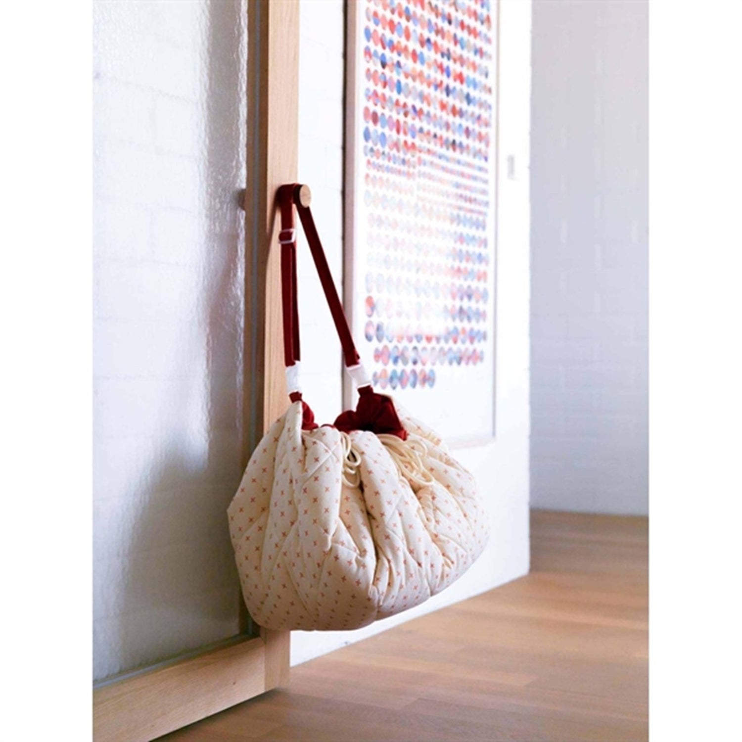 - Kan brukes som lekematte, oppbevaringspose og veske som kan henges på barnevognen