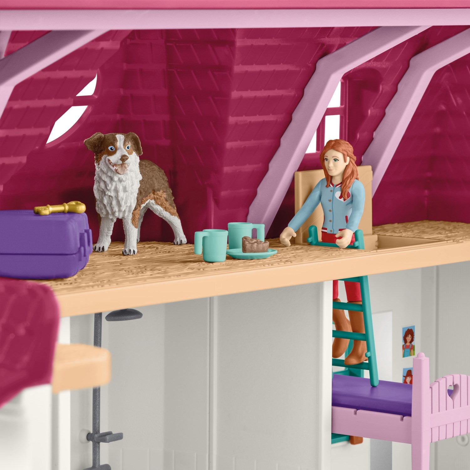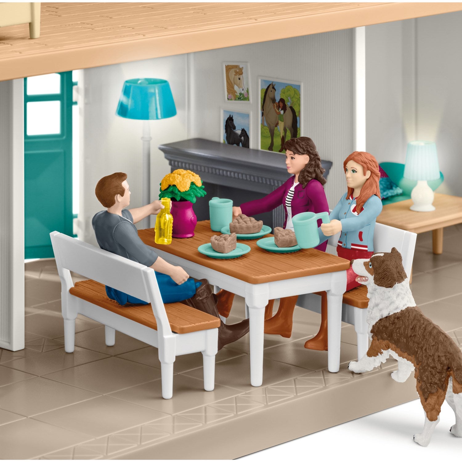 Utforsk Kramer-familiens HORSE CLUB Lakeside herregård og stall, perfekt tilrettelagt for barn fra 5 år. Dette livlige dukkehuset byr på både sikkerhet og utdannende lek, med robuste materialer som tåler timevis med engasjerende aktivitet. Både hestene og hundene oppmuntrer til rollespill, og utvikler både sosiale ferdigheter og ansvarsfølelse hos barna. Enkel i bruk og rengjøring, dessuten praktisk når det gjelder oppbevaring. La barna utforske stjernehimmelen gjennom teleskopet på loftet og drømme seg bort i en verden av eventyr.