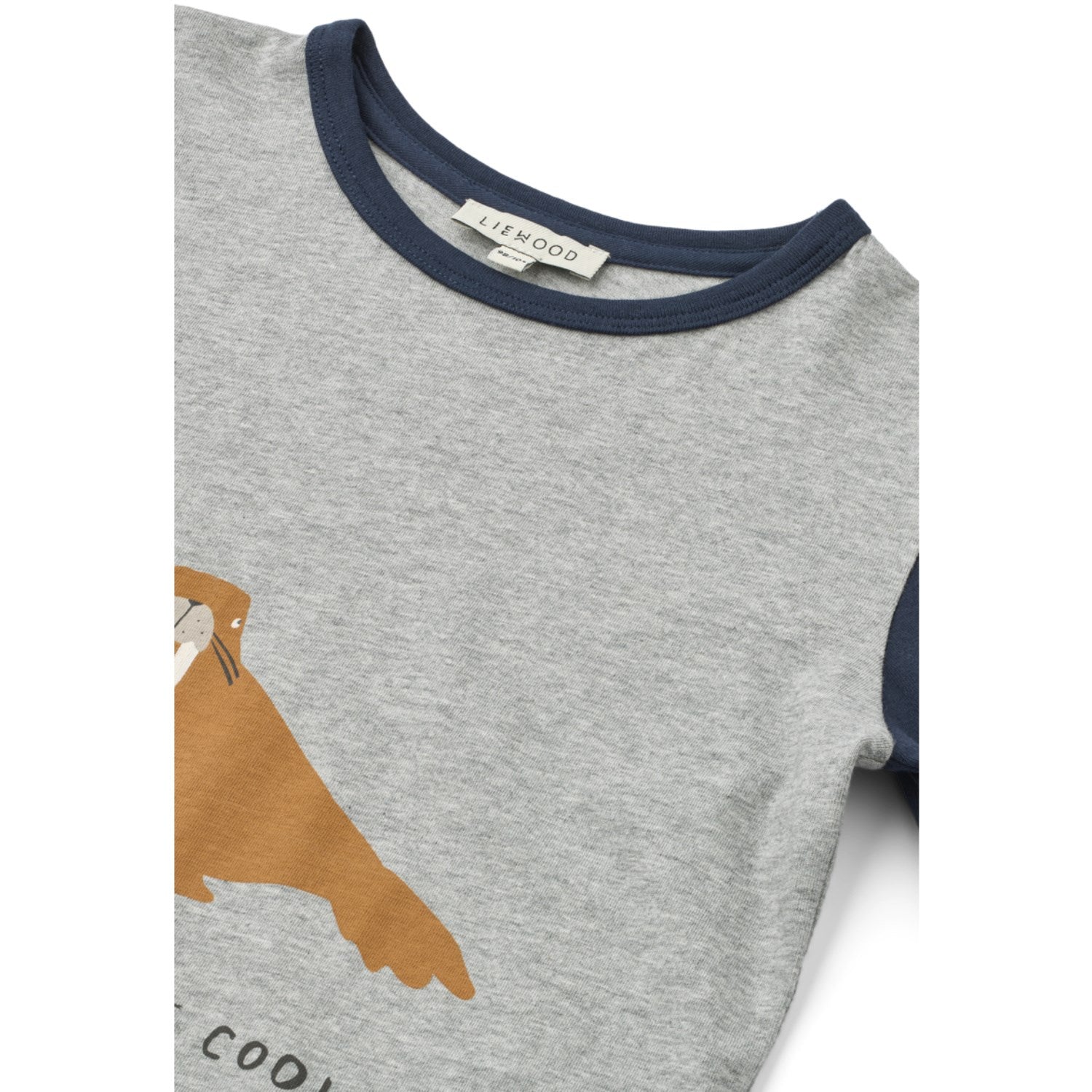 LIEWOOD Walrus / Grey Melange / Classic Navy Apia Placement Longsleeve T-Shirt