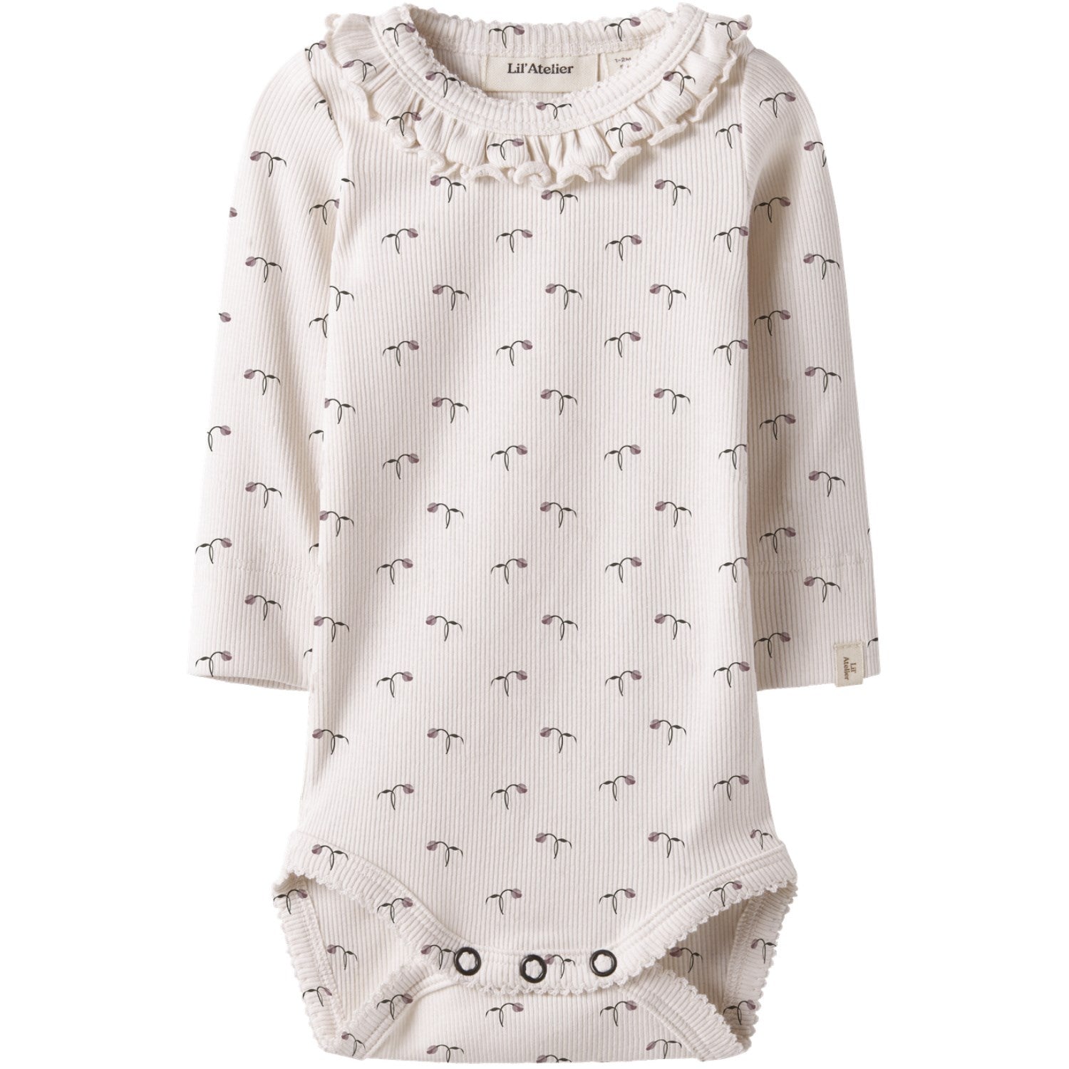 Kle opp din lille skatt med Lil'Atelier Almost Mauve Tulip Nbfgago Kis Ls Slim Body! Denne bodyen er laget av jersey, et materiale kjent for sin letthet og stretch, sikrer maksimal komfort og bevegelsesfrihet for barnet. Med sitt myke stoff både på utsiden og innsiden, gir den en behagelig følelse mot huden. Designet skiller seg ut med sin elegante Almost Mauve-farge og sjarmerende tulipanmønster som gjentar seg over hele plagget. Den har en klassisk rund hals, lange ermer og praktiske trykknappfester som gjør påkledningen enkel. Bodysuiten er ferdig med fine detaljer som rysjer og babylock, som legger til et lekent og stilfullt preg. Perfekt for alt fra lek i barnehagen til koselige hjemmedager. Denne allsidige bodysuiten vil holde barnet både stilfullt og behagelig gjennom alle aktiviteter. Vennligst merk, av sikkerhetsgrunner, hold alltid klærne unna åpen flamme.