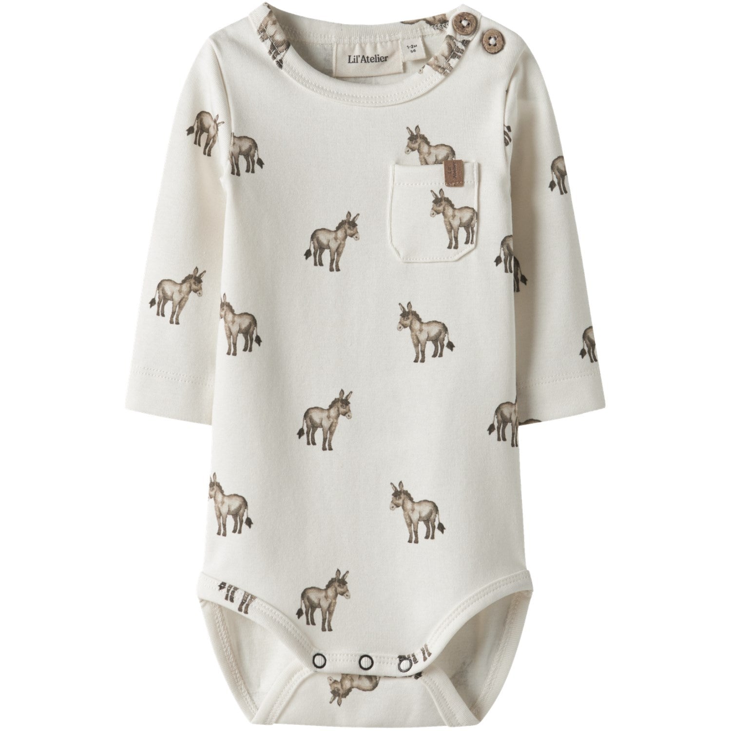 Gi barnets hverdagsantrekk et løft med Lil'Atelier Coconut Milk Donky Nbmlayo Sev Ls Slim Body. Denne behagelige bodysuiten er laget av et mykt og stretchy jersey-materiale som sikrer utmerket komfort og bevegelighet for ditt barn. Med sin elegante og stilrene design, runde hals og lange ermer, er den perfekt for både lek og hvile. Bodysuiten kommer i en delikat "Coconut Milk"-farge med sjarmerende mønster som gjentar seg over hele plagget, en søt liten brystlomme og praktisk knappelukking med ekstra trykknapper i skrittet for enklere påkledning. Oppdag hvor enkelt det er å kombinere stil med funksjonalitet for de minste! Materialer: 57% Bomull - Økologisk, 38% Lyocell TENCEL™, 5% Elastan Vaskeinstruksjoner: Maksimal vasketemperatur 40 °C - normal prosess Ekstra: Hovedmaterialet i dette produktet inneholder minimum 50% økologisk bomull.
