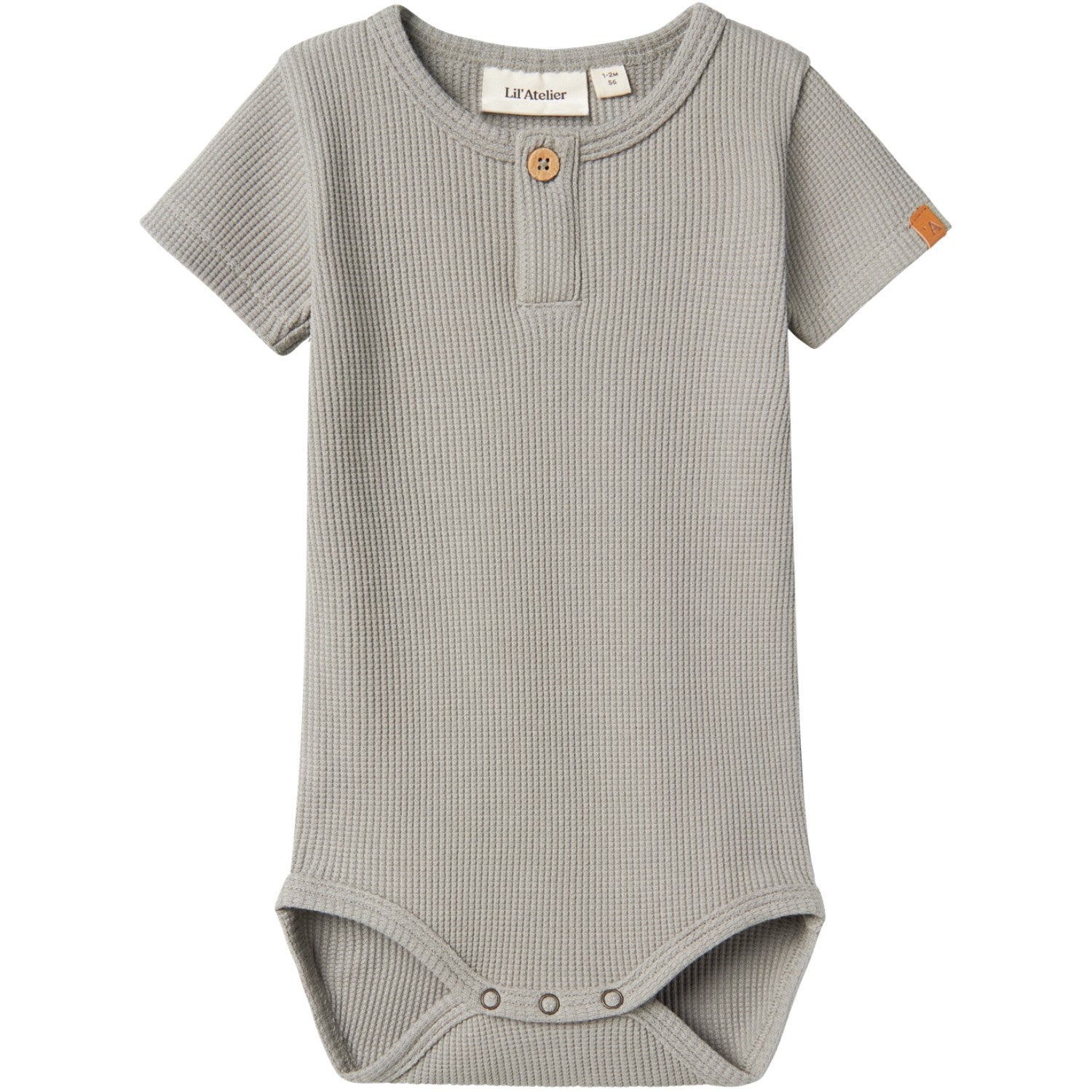 La Lil'Atelier Forest Fog Diem Body gir din lille et stilfullt og komfortabelt antrekk. Denne bodyen er laget av jersey, et materiale kjent for sin letthet og stretch, som sørger for optimal bevegelsesfrihet og en myk følelse både på innsiden og utsiden. Med en klassisk 'bestefar'-hals, korte ermer og praktisk knappe- og trykknapplukking, er denne bodysuiten både funksjonell og moteriktig. Den kommer i beroligende farger med et delikat mønster, perfekt for enhver anledning. I tillegg er holdbarheten og enkelheten i vedlikehold ideell for den aktive hverdagen til barn. Lil'Atelier er kjent for sin kvalitet og stil, noe som gjør dette til et utmerket valg for ditt barns garderobe.