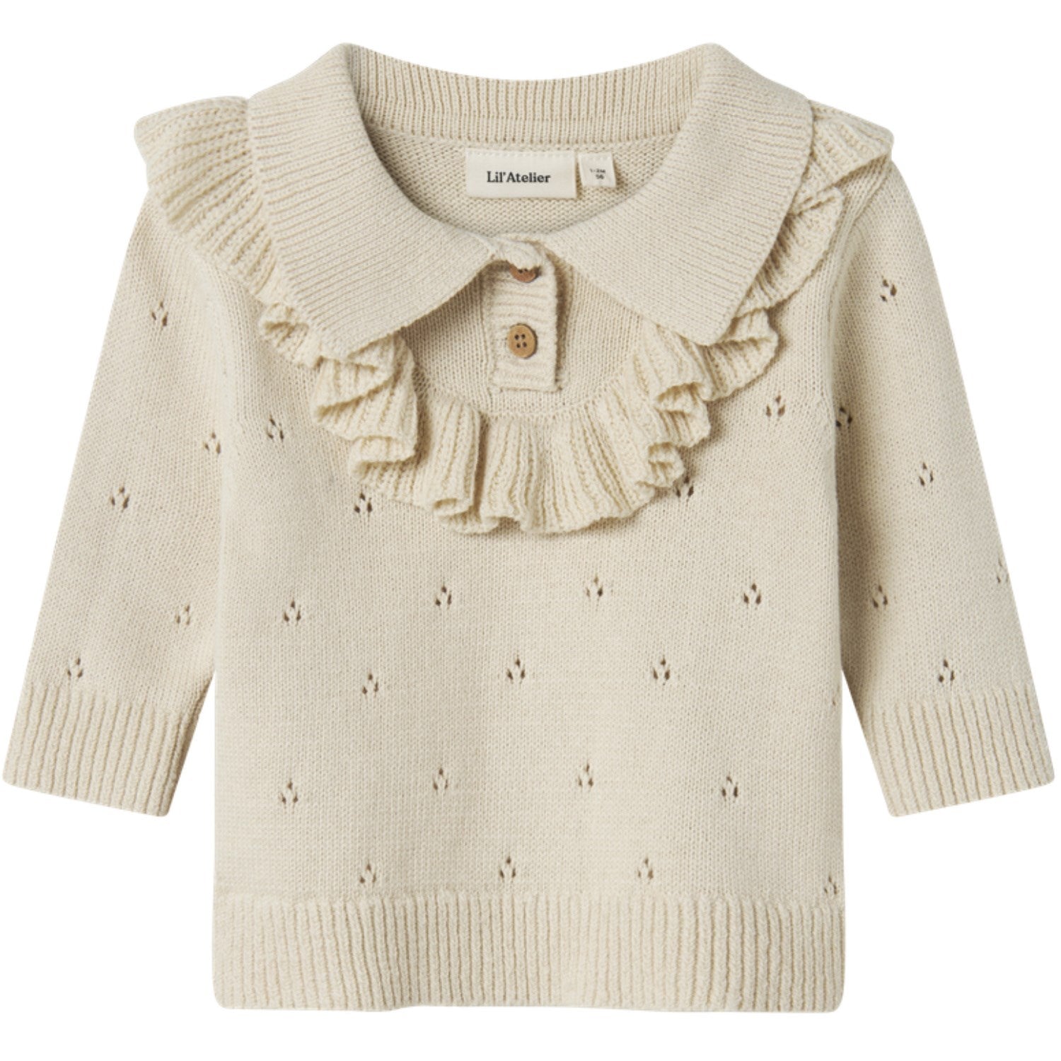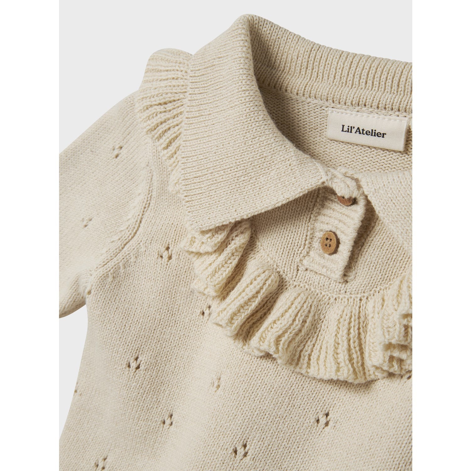 Gjør barnets garderobe klar for koselige øyeblikk med Lil'Atelier Turtledove Nbfnakita Ls Loose Strikk. Denne strikkede toppen kombinerer mykhet og stil, og er ideell for små utforskere på farten. Toppen har en avslappet passform med en polohals, lange ermer og praktisk knappefeste for lett påkledning. De nydelige volangdetaljene tilfører et søtt preg på designet, mens den løse passformen sikrer komfort gjennom lekne dager. Materialet er nøye valgt for å gi en behagelig og varm følelse, noe som gjør den perfekt for både innendørs og utendørs bruk. Toppens allsidighet og stil gjør den til et flott valg for enhver anledning, og den enkle omsorgen for plaggene sikrer at de holder seg fine lenge. Husk å holde dette plagget unna brann for å sikre maksimal sikkerhet.