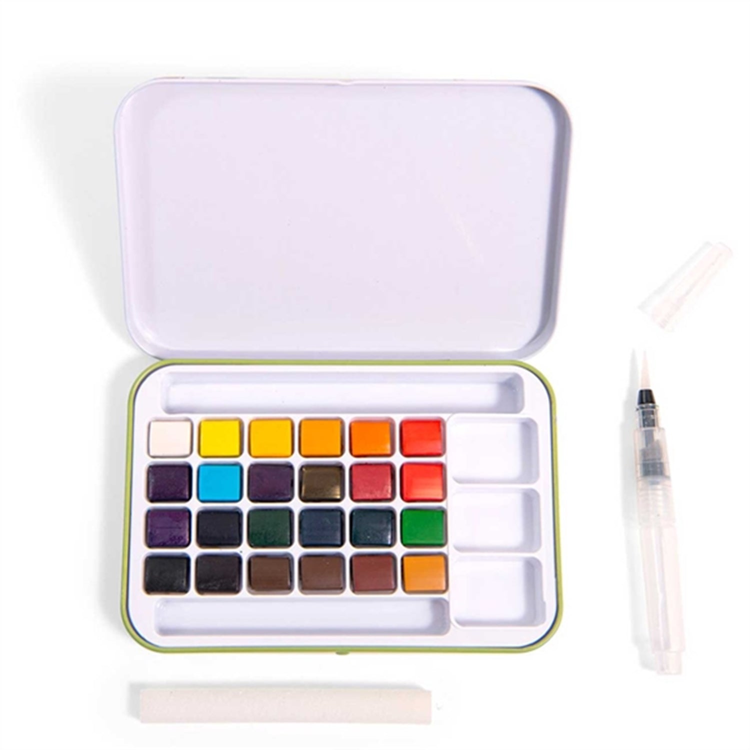 - Innhold: Metallboks, 24 akvareller, pensel, svamp