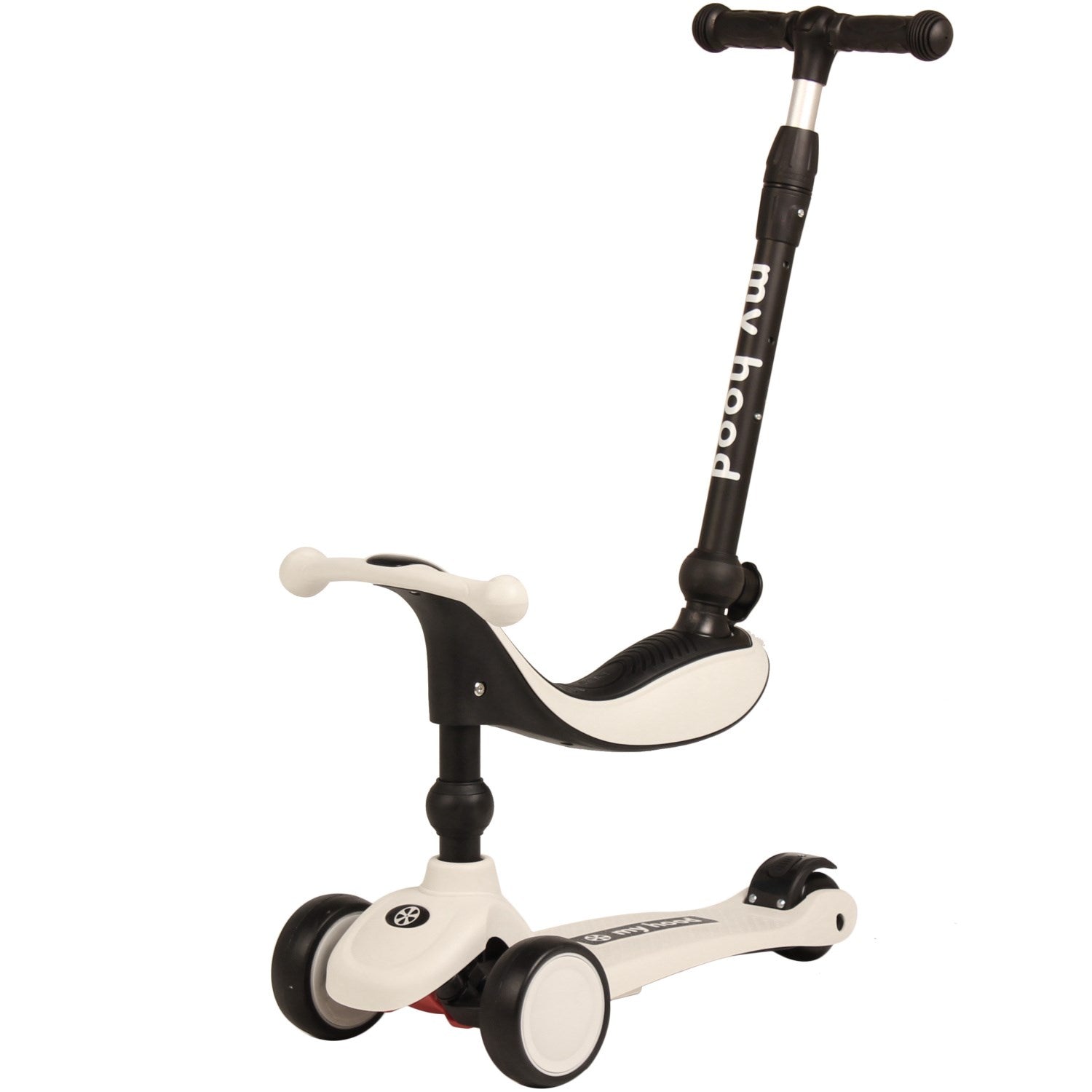 Oppdag gleden ved aktiv lek med My Hood Cool Grey Kick'N'Ride – det perfekte valget for små eventyrere! Designet for å vokse med barnet, starter denne innovative 2-i-1 sparkesykkelen som en balansesykkel, ideell for de aller yngste fra rundt 1 år. Barna kan bruke den sittende og skyve seg selv fremover med bena, noe som utvikler både balanse og motoriske ferdigheter på en morsom og engasjerende måte.