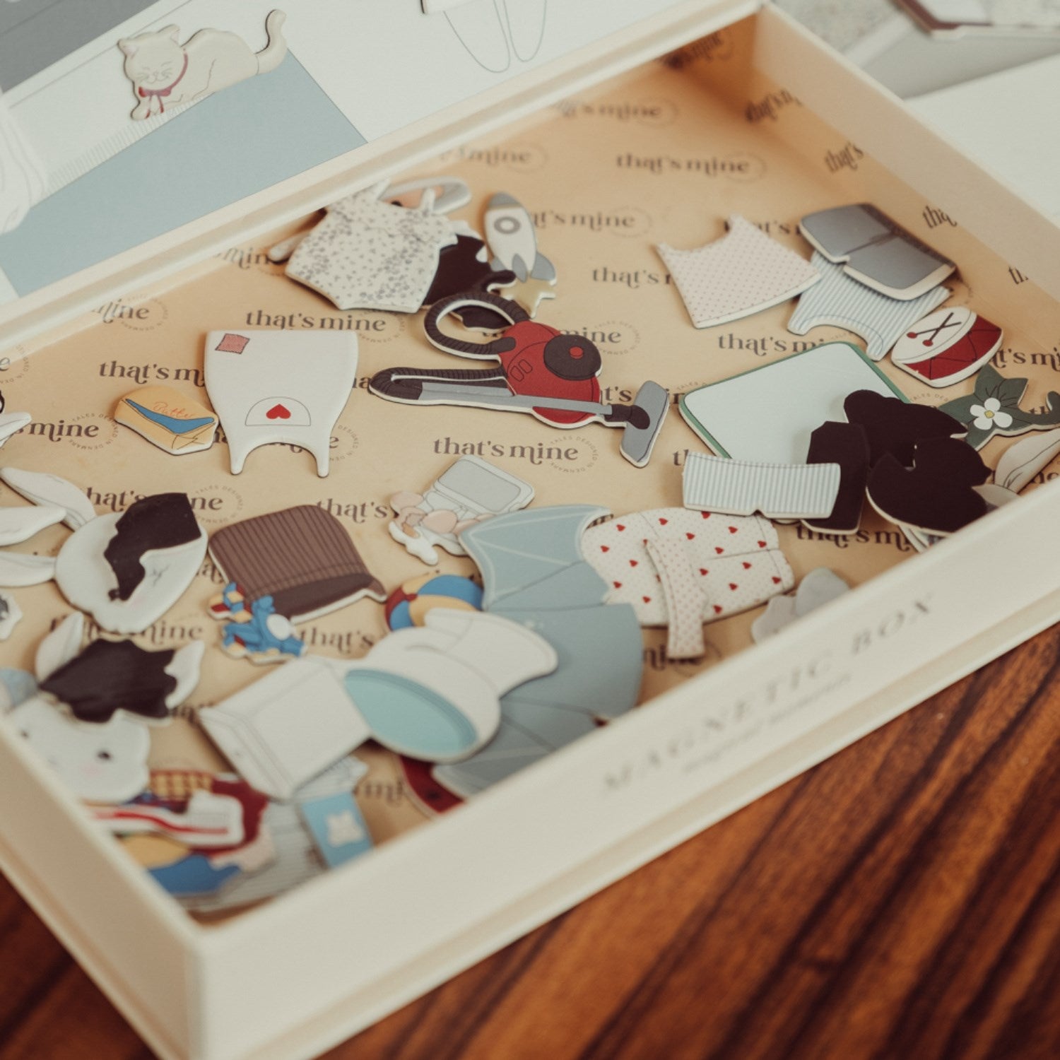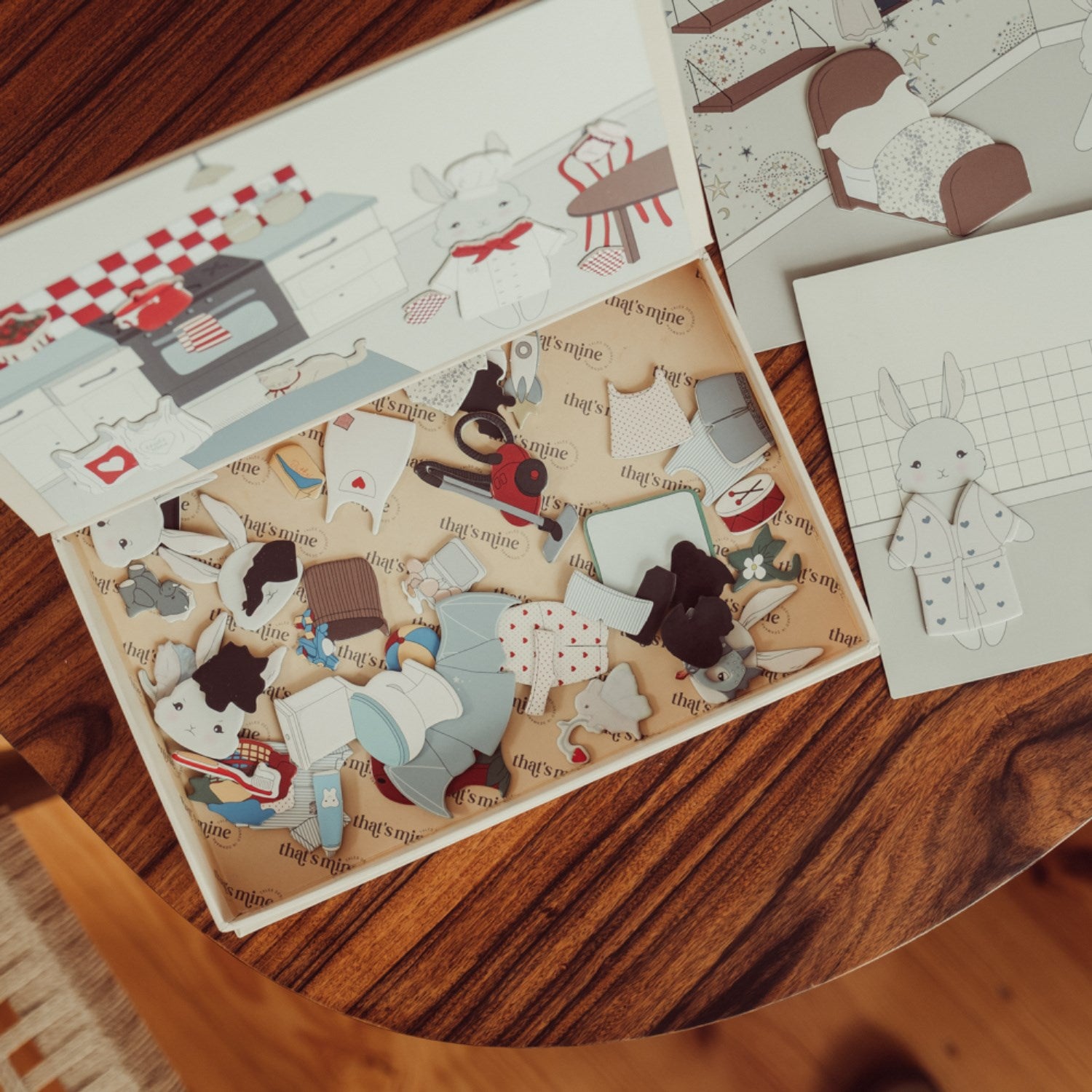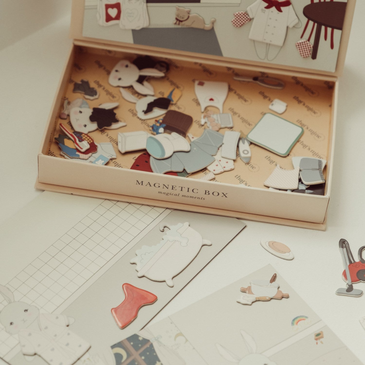 La barna utforske og lære med That's Mine Bunny Lou Magnetic Box! Denne innholdsrike magnetboksen er designet for å vekke barnas nysgjerrighet og kreativitet. Med en åpnbar side som fungerer som magnetisk kort, samt 54 tilbehørsdeler, 4 forskjellige kaninhoder og 3 dekorerbare rom, tilbyr den rikelige muligheter for lek og læring. Perfekt for barn mellom 3 og 8 år, denne leken er ikke bare underholdende, men også sikker og lett å bruke, lagre og vedlikeholde. Det er en strålende måte å fremme dialog og samspill på, både blant barn og sammen med voksne.