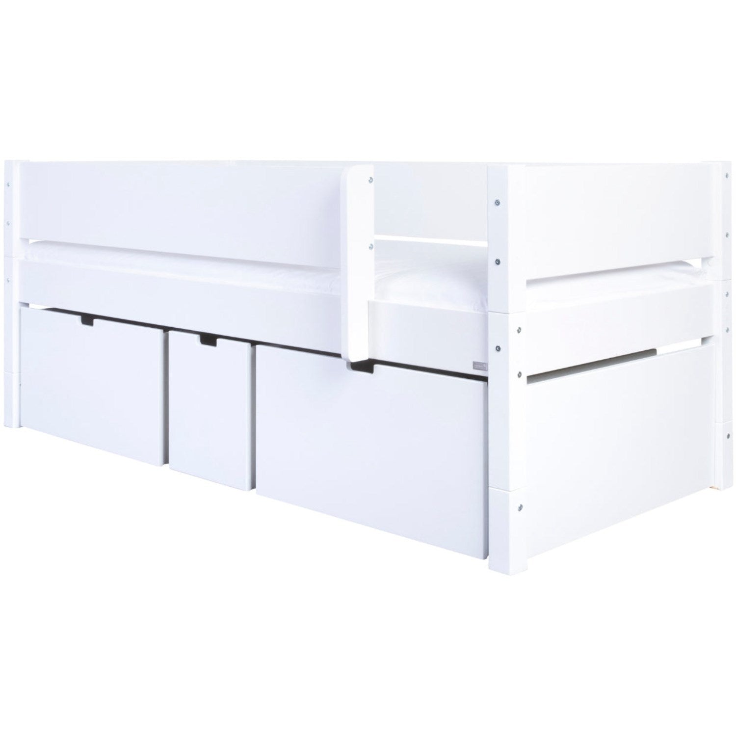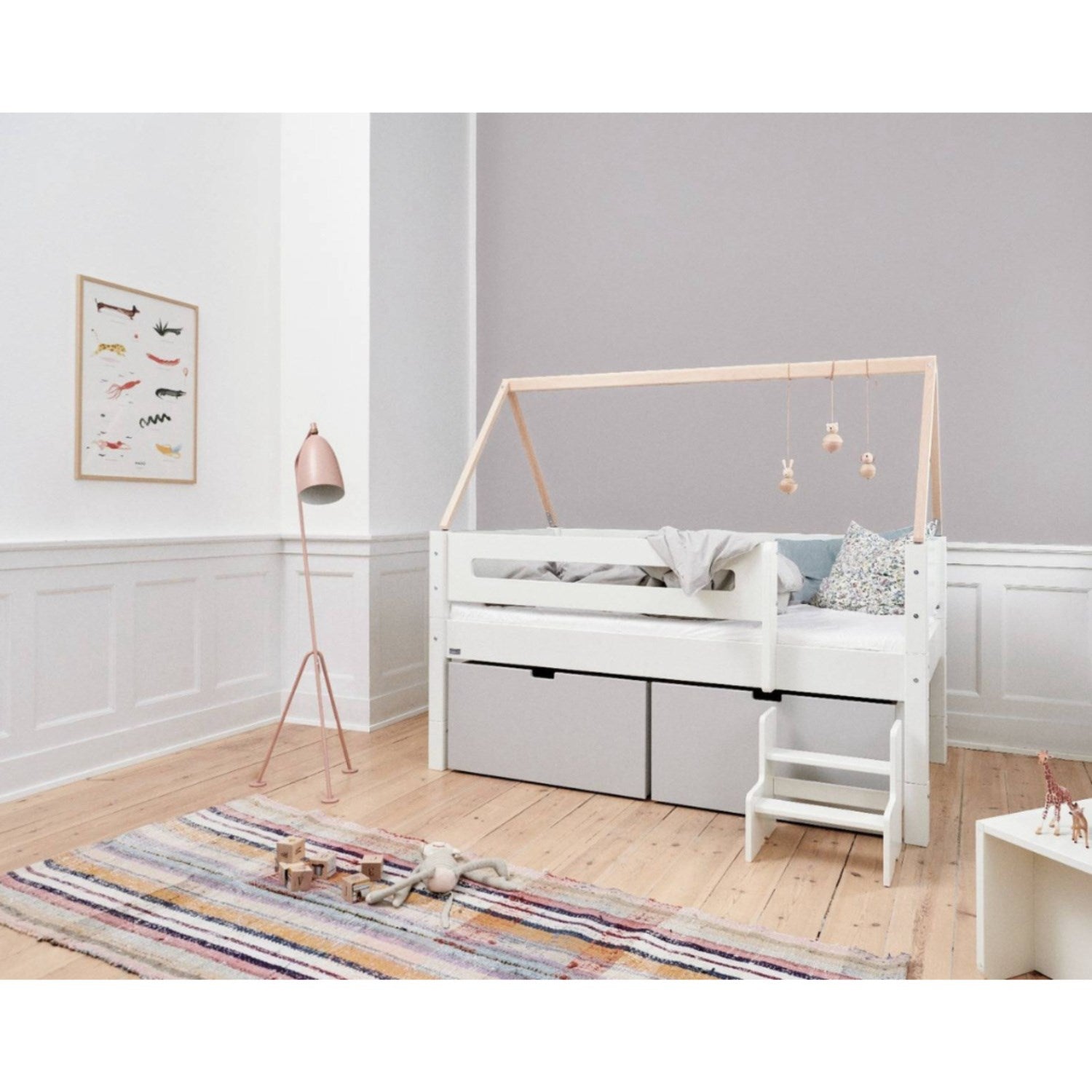 Gi barnerommet et pust av ro og harmoni med Manis-h Snow White Nanna Børneseng. Denne elegante enkeltsengen kombinerer stil og funksjonalitet, og de romslige skuffene under sengen tilbyr en perfekt løsning for å holde leker, klær og sengetøy pent organisert. Nanna-sengens ergonomiske design sikrer en komfortabel søvn, mens det tidløse, hvite utseendet stimulerer en følelse av ro og renhet, perfekt tilpasset barnas behov og aktiviteter. Ideal for ethvert barnerom der estetikk og orden går hånd i hånd.