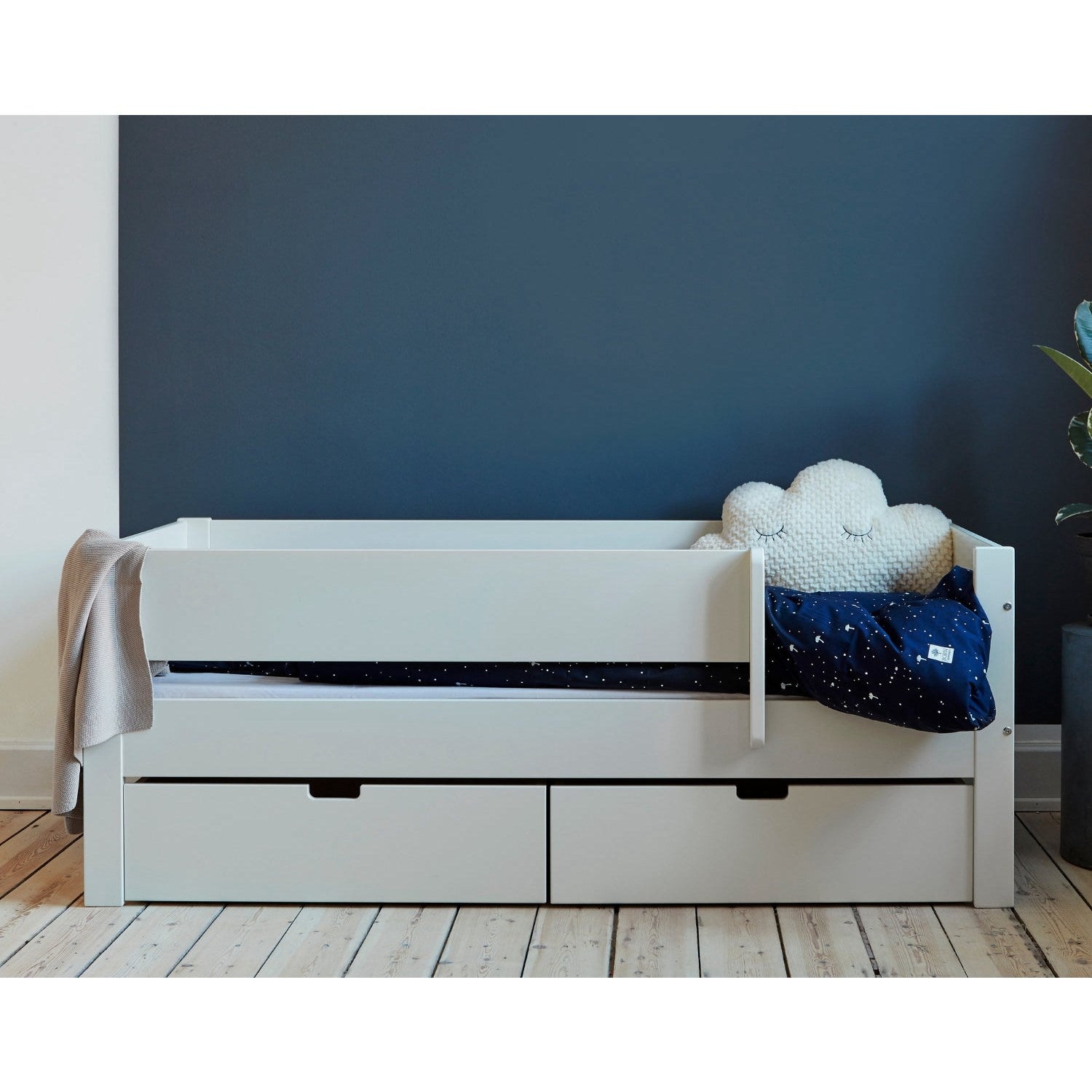 Gjør overgangen fra babyseng til juniorseng både stilig og smidig med Manis-h White Huxie Juniorseng. Dette nøye designet møblet er ikke bare trygt med sin integrerte sengekant, men også funksjonelt og justerbart. Den kan enkelt omgjøres til en halvhøy seng eller en køyeseng, perfekt tilpasset ditt barns voksende behov. Med sin nøytrale hvite farge og muligheten for fargerike detaljer som Azur mint, Dusty rose, Sunny yellow eller Light green, passer denne sengen perfekt inn i ethvert barnerom. Sengens størrelse på 70x160 cm tilbyr også rikelig med plass, samtidig som den oppmuntrer til selvstendighet og spiller på barnets utvikling og læring.